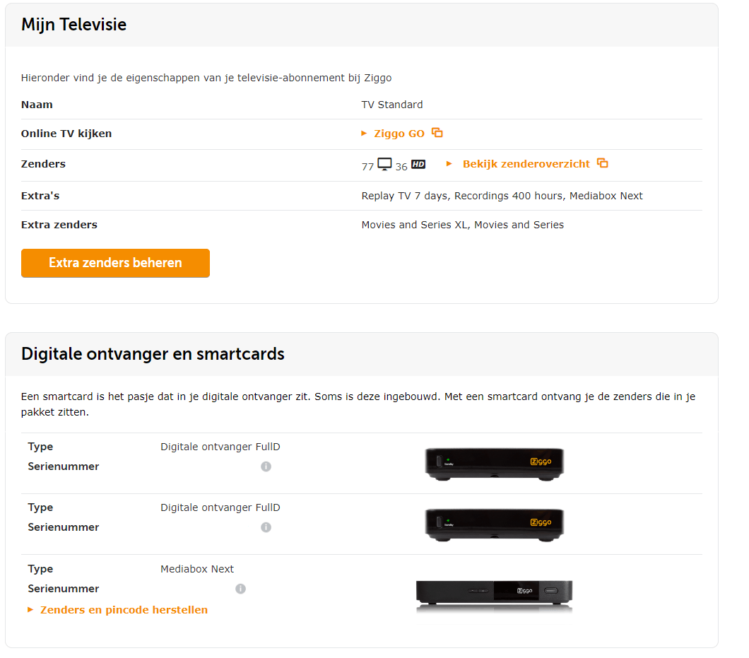 Onder MijnZiggo > Digitale ontvangers en smartcards staat nu wel de Mediabox Next. Echter onder Mijn Televisie staat bij Extra's nog steeds Mediabox XL.