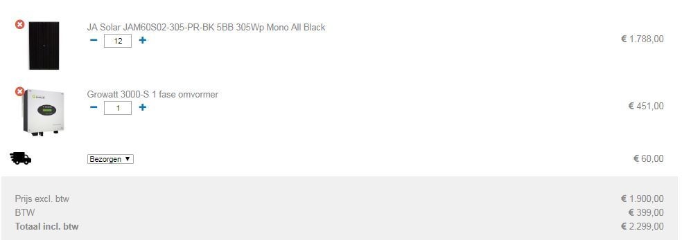 Afhankelijk van omvormer en extra kosten zoals DC bekabeling, kom ik ongeveer uit op EUR 0,73 / WP
