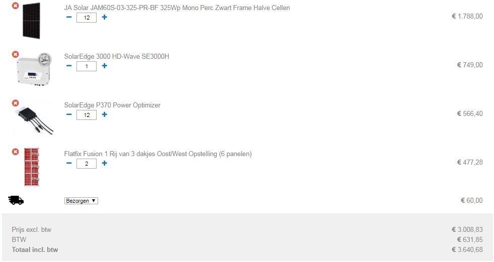 Ik ben nog aan het oriënteren en heb nog geen offertes opgevraagd. Ik ben best handig en kan het zelf wel monteren en aansluiten. De meterkast heb ik zelf ook vervangen.