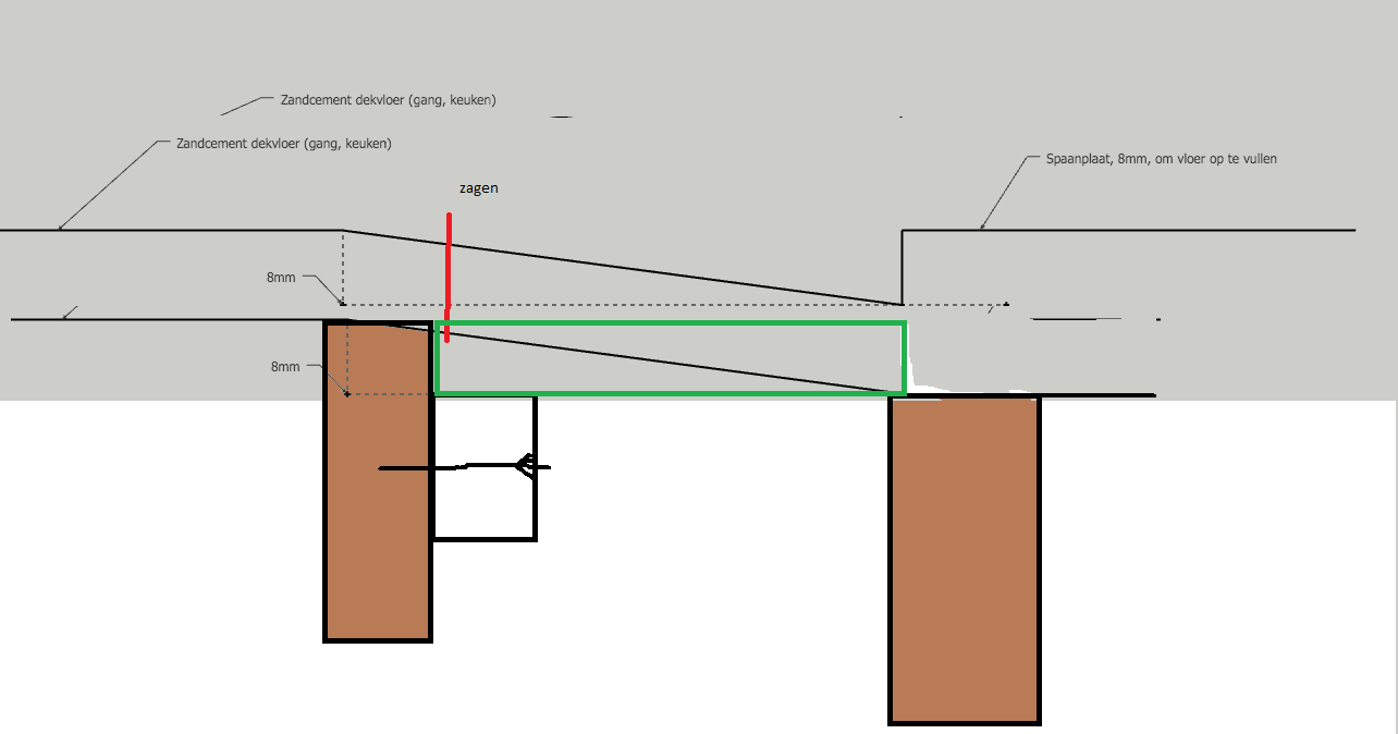 Binnenkort wil ik de vloer gaan leggen (laminaat), zonder dorpel bij de tussendeur en uiteraard ook bij de keuken.