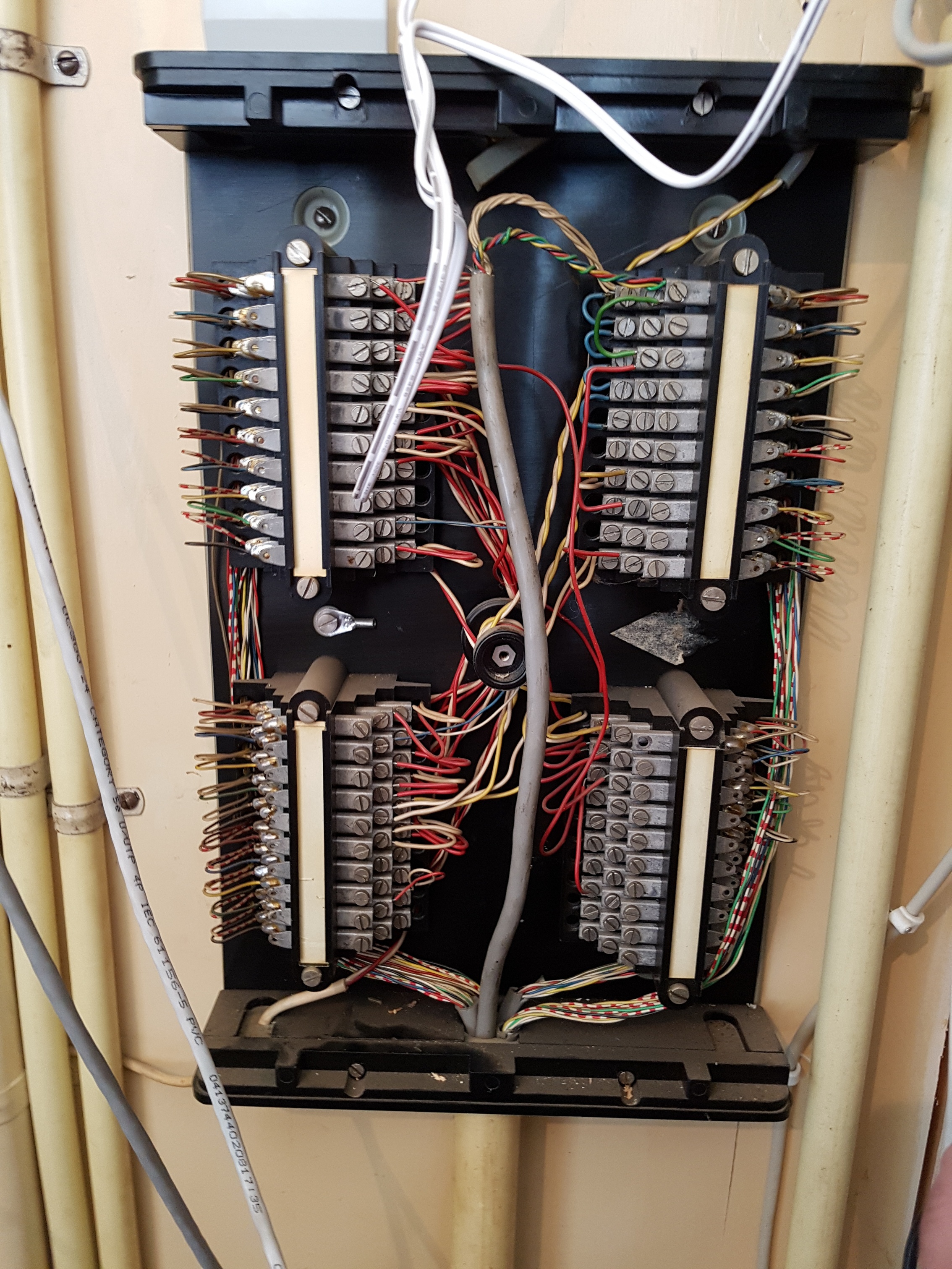 Let niet op alle andere kabels die uit dat kastje komen. Ooit is iemand zo slim geweest om dat kastje ook te gebruiken om alle interne lijnen daarin te laten uitkomen. toen nog extra kabeltjes ivm isdn internet.