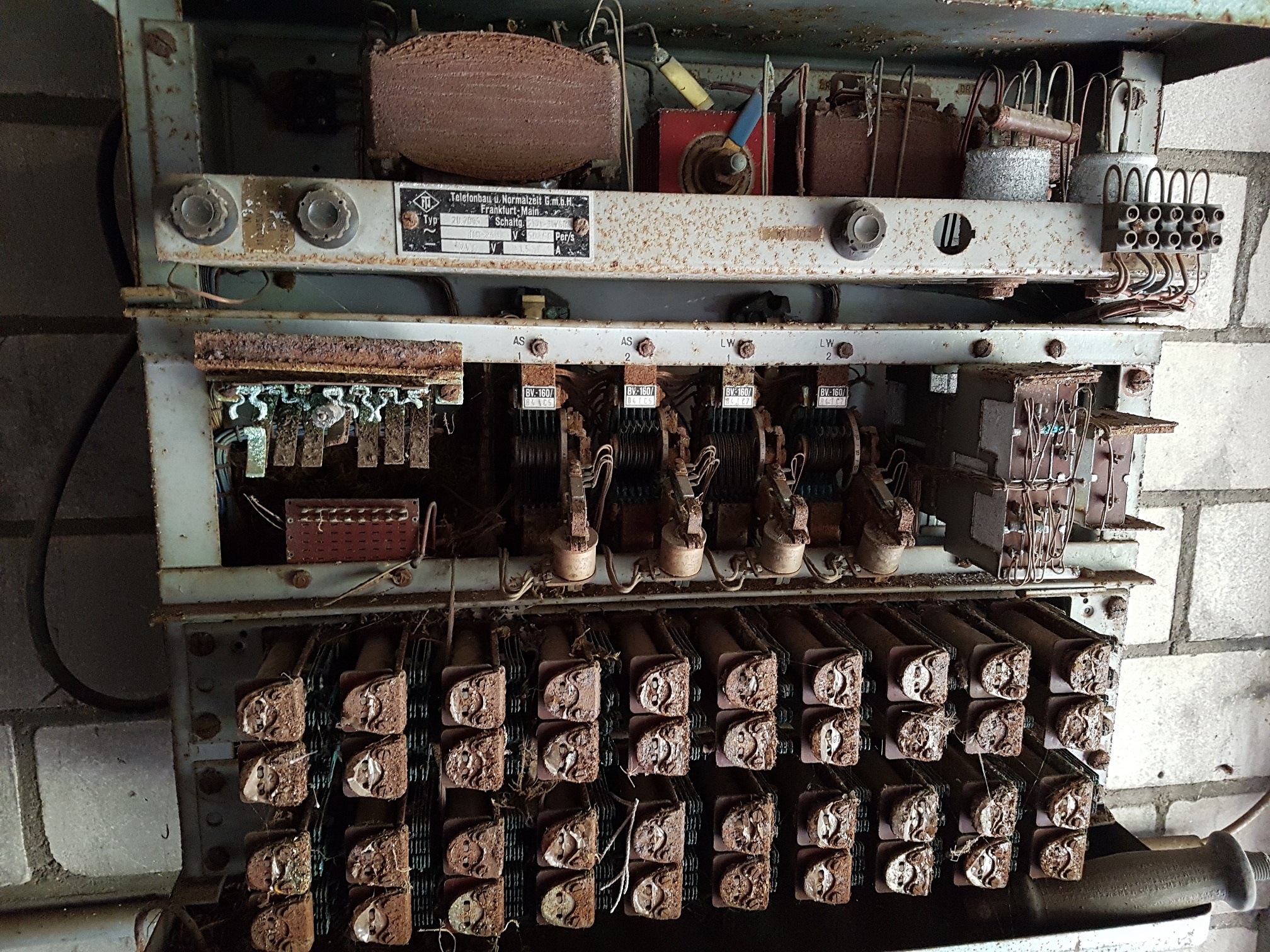 je eerste foto is een verdeelkast voor telefonie, die verroeste installatie is een oude telefooncentrale (prachtig ding !)