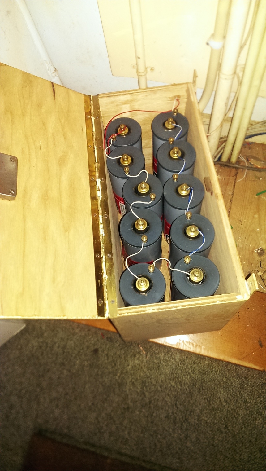 Het kabeltje linksonder (dat verdwijnt achter de gele buizen) ging naar wat ik vermoed een soort noodaccu (een box met tien De Witte Kat batterijen van ik denk 15cm hoog en een diameter of 5cm). Dit zat daar ooit aan:wimmel_1 schreef op zaterdag 6 april 2019 @ 15:07: