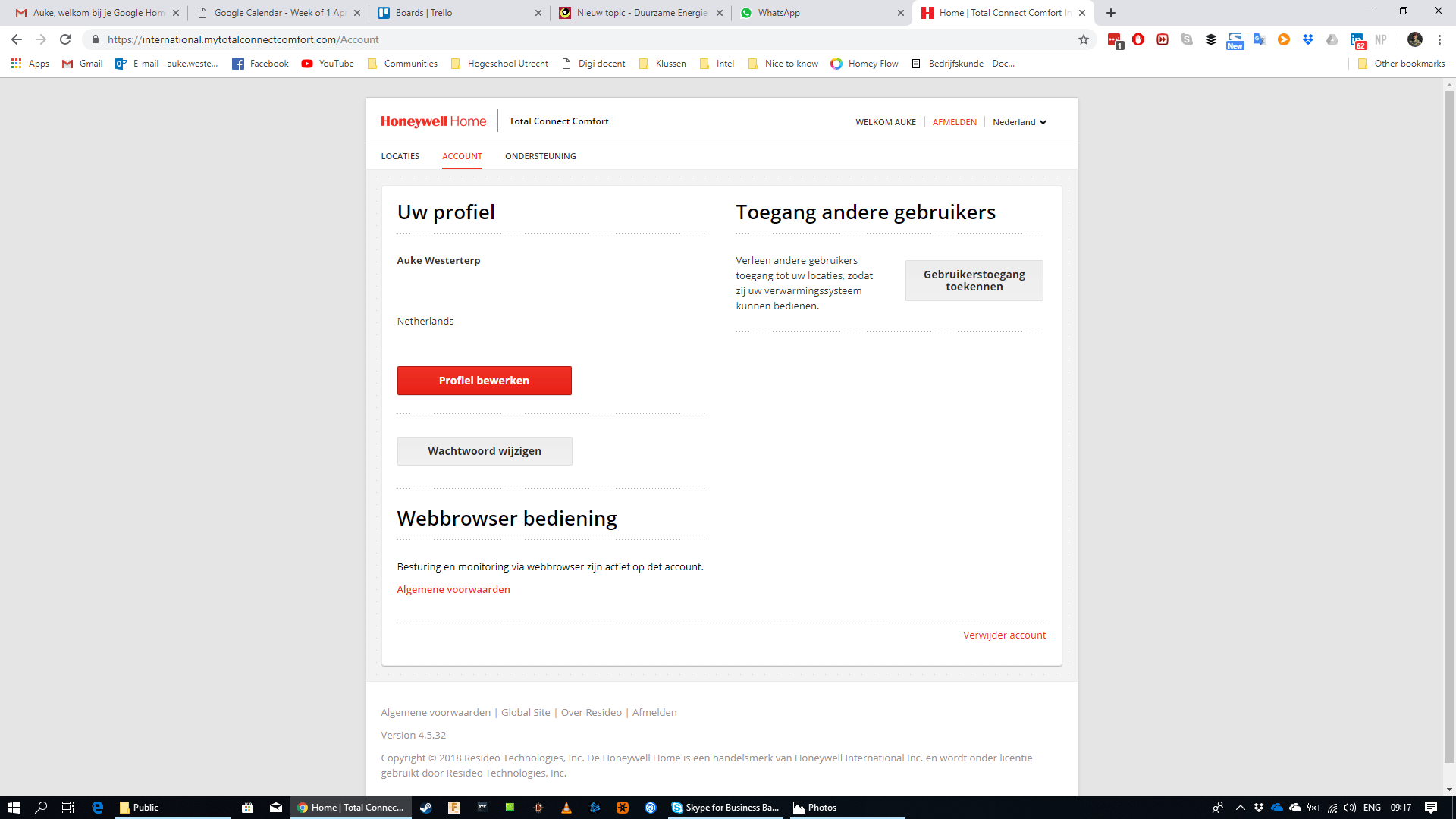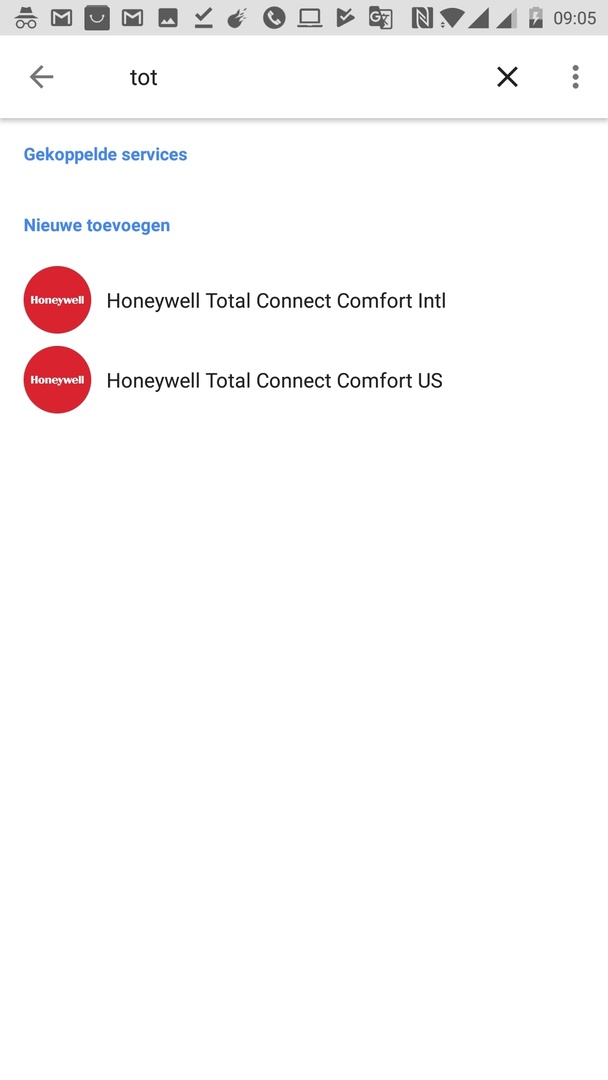 De verschillende thermostaten van Honeywell verschenen wel in het overzicht van ruimtes, maar waren niet meer te benaderen. Ik heb toen in Google Home de service van Honeywell Total Connect Comfort Intl ontkoppeld om deze opnieuw te verbinden met mijn account. Het ontkoppelen ging prima.