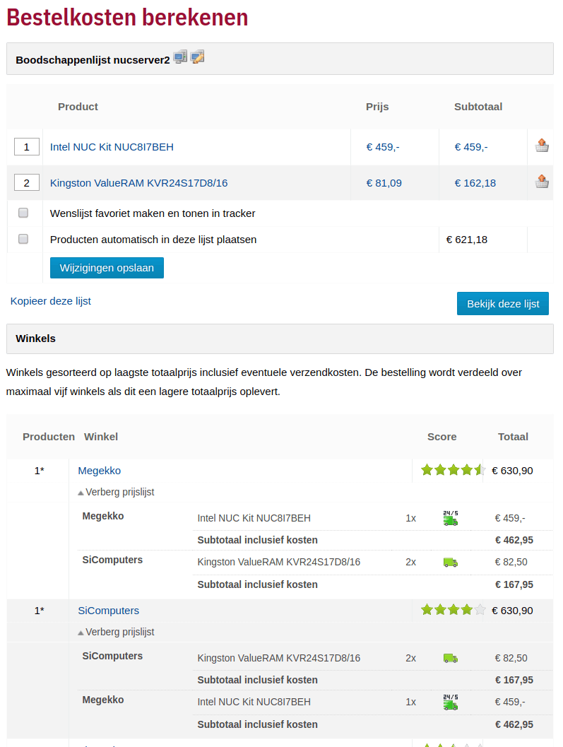 Bij het berekenen van de bestelkosten vanuit mijn wenslijst, krijg ik tweemaal dezelfde resultaten te zien, maar gewoon in een andere volgorde, alsof het een geheel andere mogelijkheid is. Het is gewoon dezelfde bestelling, maar dan de winkels in een andere volgorde gegeven.