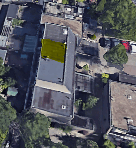 3 verdiepingen met een stuk platdak (geschikt voor de panelen) en een stuk schuindak welk niet geschikt is (ivm asbest in de platen).