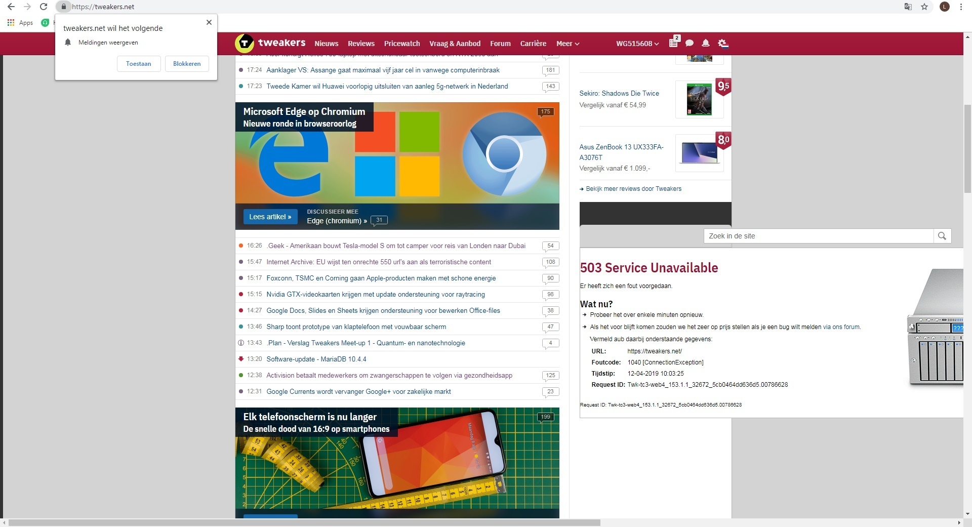 Ik kwam op de frontpage, en ik vond dit toch wel erg raar. Vooral omdat er gevraagd wordt of Tweakers mij meldingen mag geven, daar ik die melding nog nooit heb gezien.