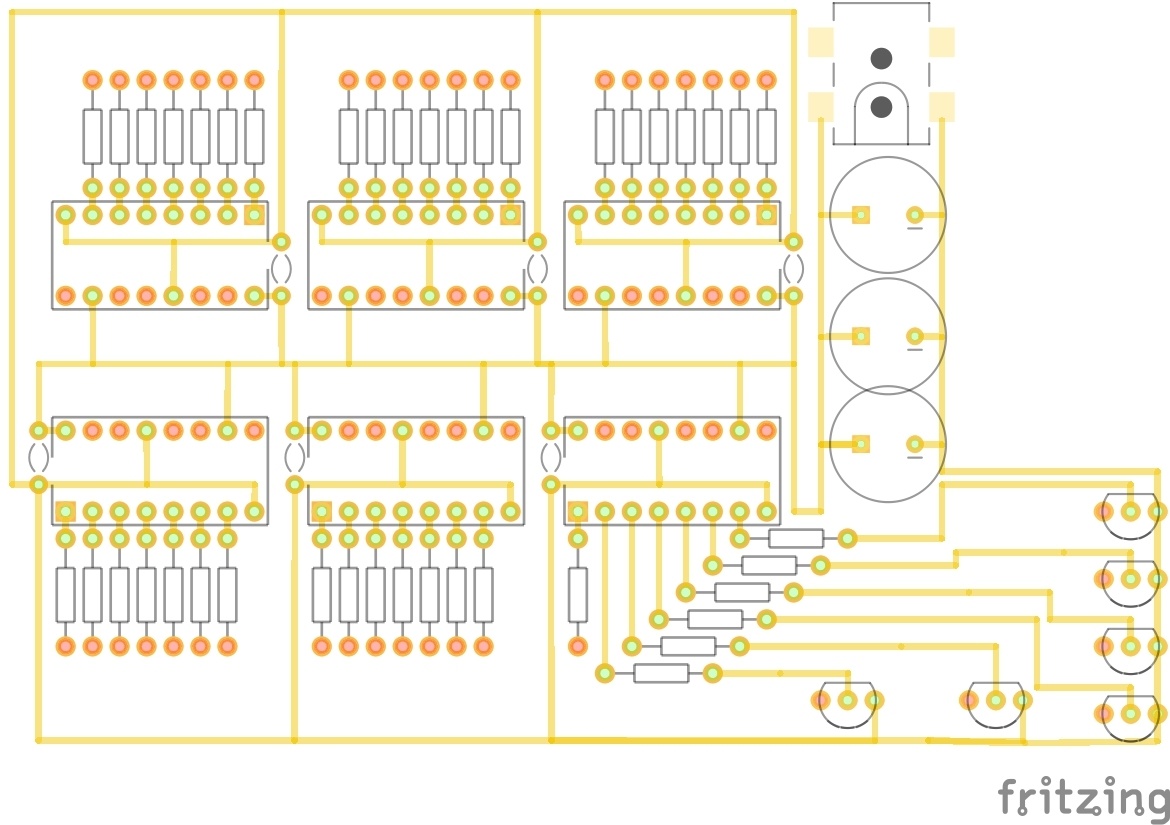 Denk ook na over je aansluitingen, random draadjes in de print prikken wordt niemand blij van, zet een IDC header op de print en je kunt met een bandkabel oid naar je leds toe.