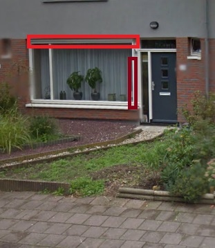 De zonwering is net zo breed als het hele raam (denk 2 meter?).
