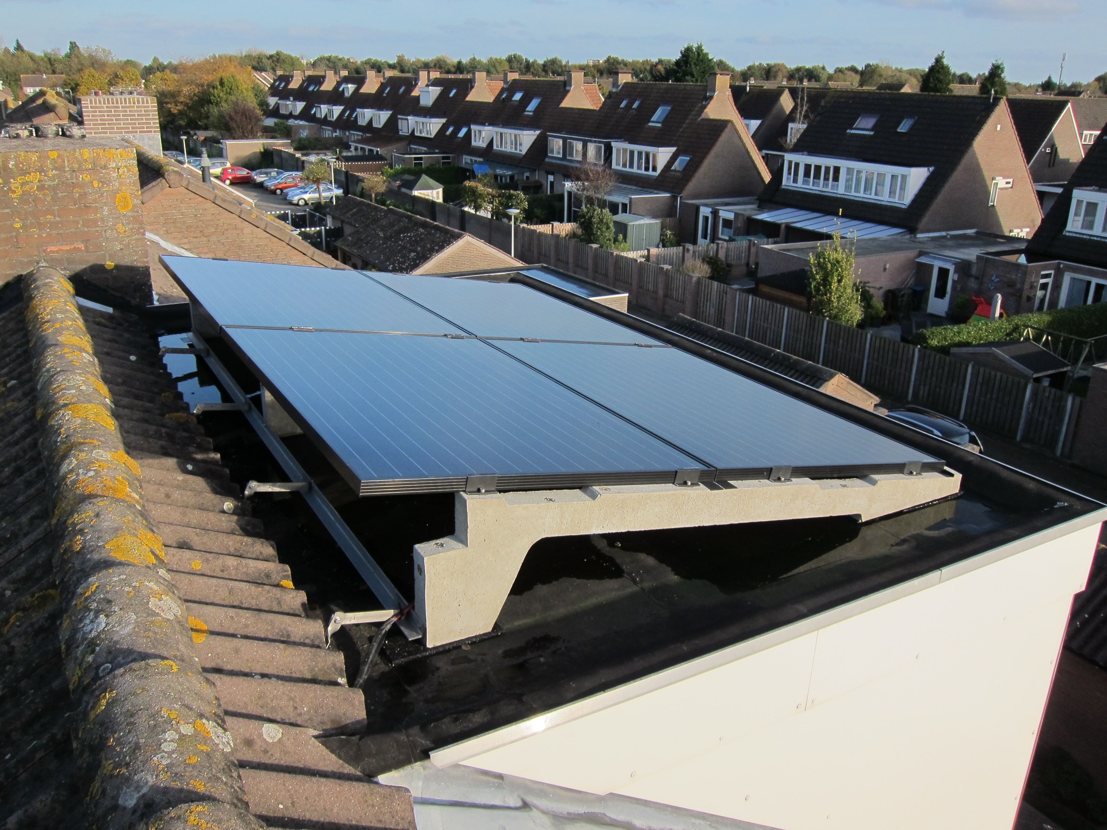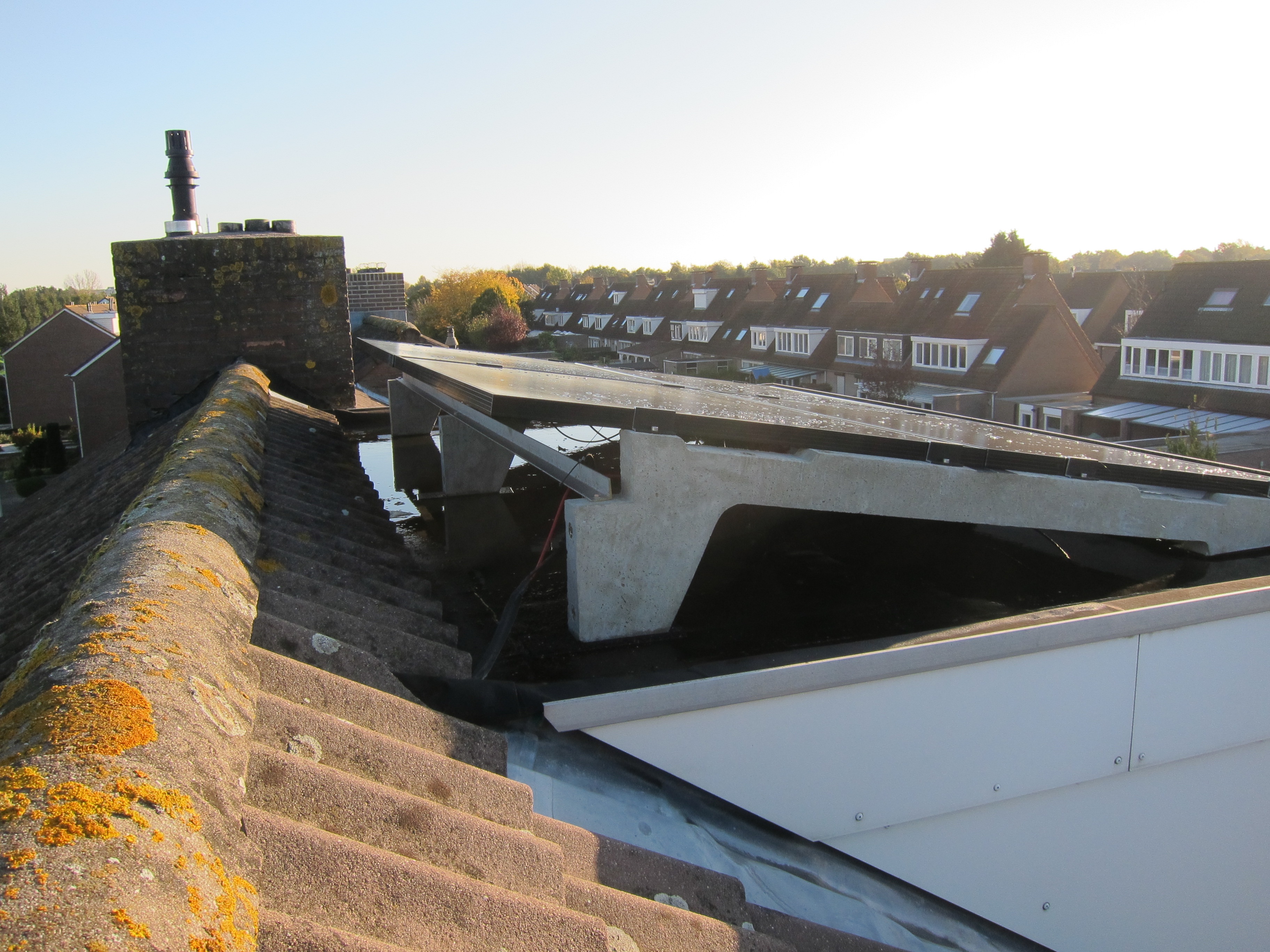 Mijn huis staat in Noord-Brabant en heeft een platdak op ongeveer 9meter hoogte met lengte 8,3m en breedte 5,65. De dakrand is ongeveer 40cm breed en 15cm hoog. Dus de effectieve ruimte waar panelen opgelegd kunnen worden is 7,5m bij 4,8m (geen rekening gehouden met de schaduwwerking vd dakrand zelf). Als ik de standaard No-go zone aanhoud, aangegeven door flatfix fusion is 1,8m, dan blijft er bij mijn dakhoogte van 9meter niet veel meer ruimte meer over. Wat is de minimale afstand vd dakrand om nog veilig zonnepanelen, met extra ballast, neer te leggen zonder dat ze er vanaf waaien?