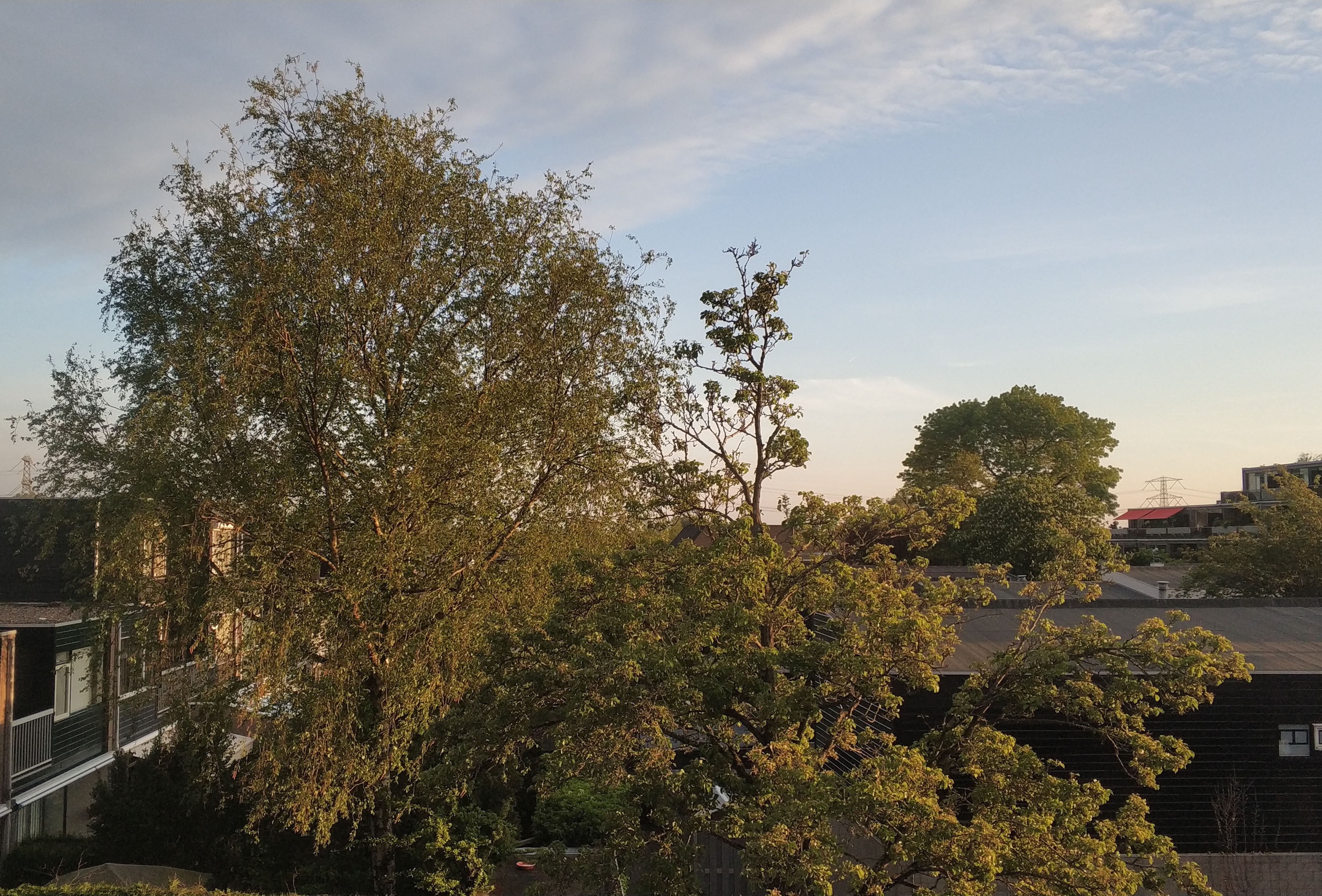 In de winter heb ik vermoedelijk minder last van de flat, omdat de zon dan minder ver in het westen onder gaat. Geen idee hoe het dan zal zijn in de zomer.