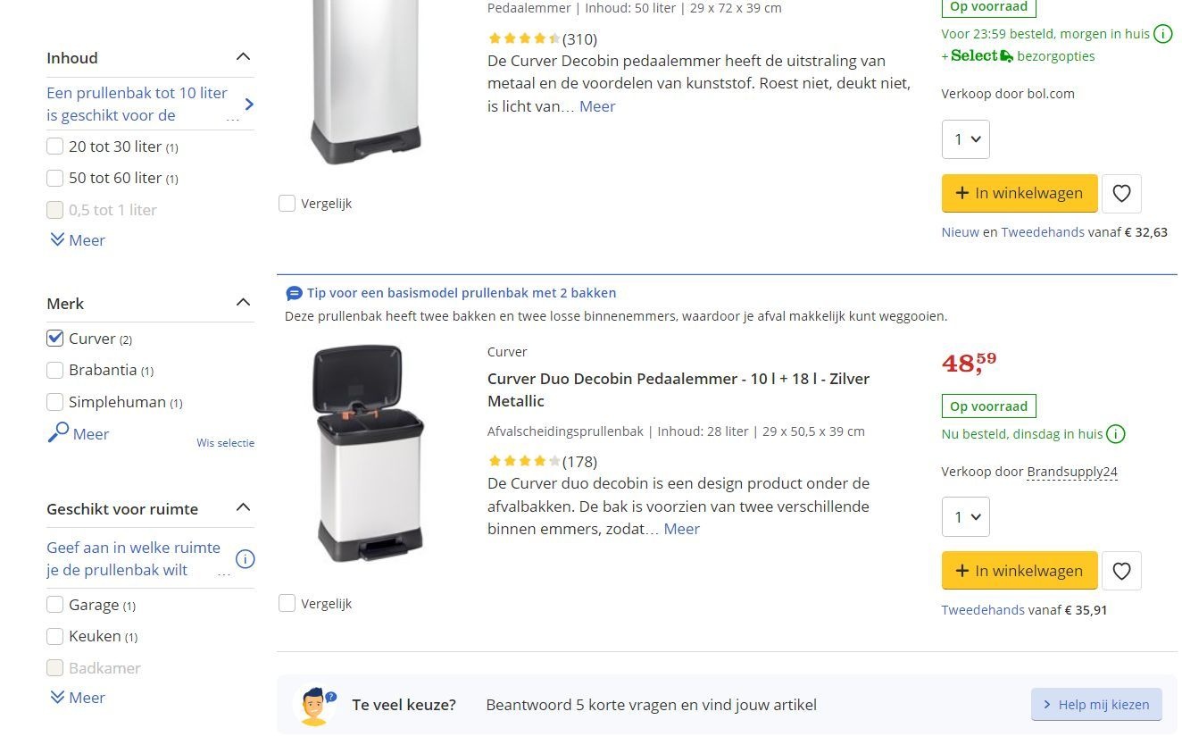 Want? Als je belt en aangeeft een vuilnisbak te willen van 60 liter, liefst van metaal, niet meer dan 51 Euro en nu leverbaar, kunnen zij telefonisch je toch 1 of 2 typen geven en die kan je dan bestellen?TimoDimo schreef op zondag 5 mei 2019 @ 18:28: