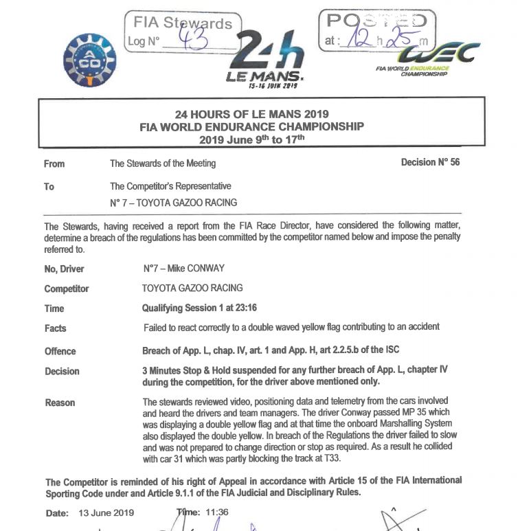 Toyota #7, #8: https://toyotagazooracing...ns-onboard-live-2019.html
