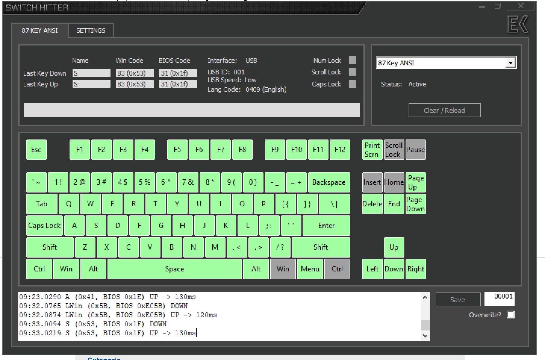 Je hebt alles ontvangen en om je zelf heel veel moeite te besparen ga je eerst alles testen. Nu ben ik lui en raad ik aan om alleen de pcb te testen. Zou toch jammer zijn dat je alle switches er weer uit kan halen omdat je een defect PCB hebt, daarintegen als 1 switch of LED kapot is, is die gemakkelijk te vervangen. Het testen doe je met EK switch hitter, hier te vinden: https://www.majorgeeks.com/files/details/switch_hitter.html en kan er als volgt uit zien