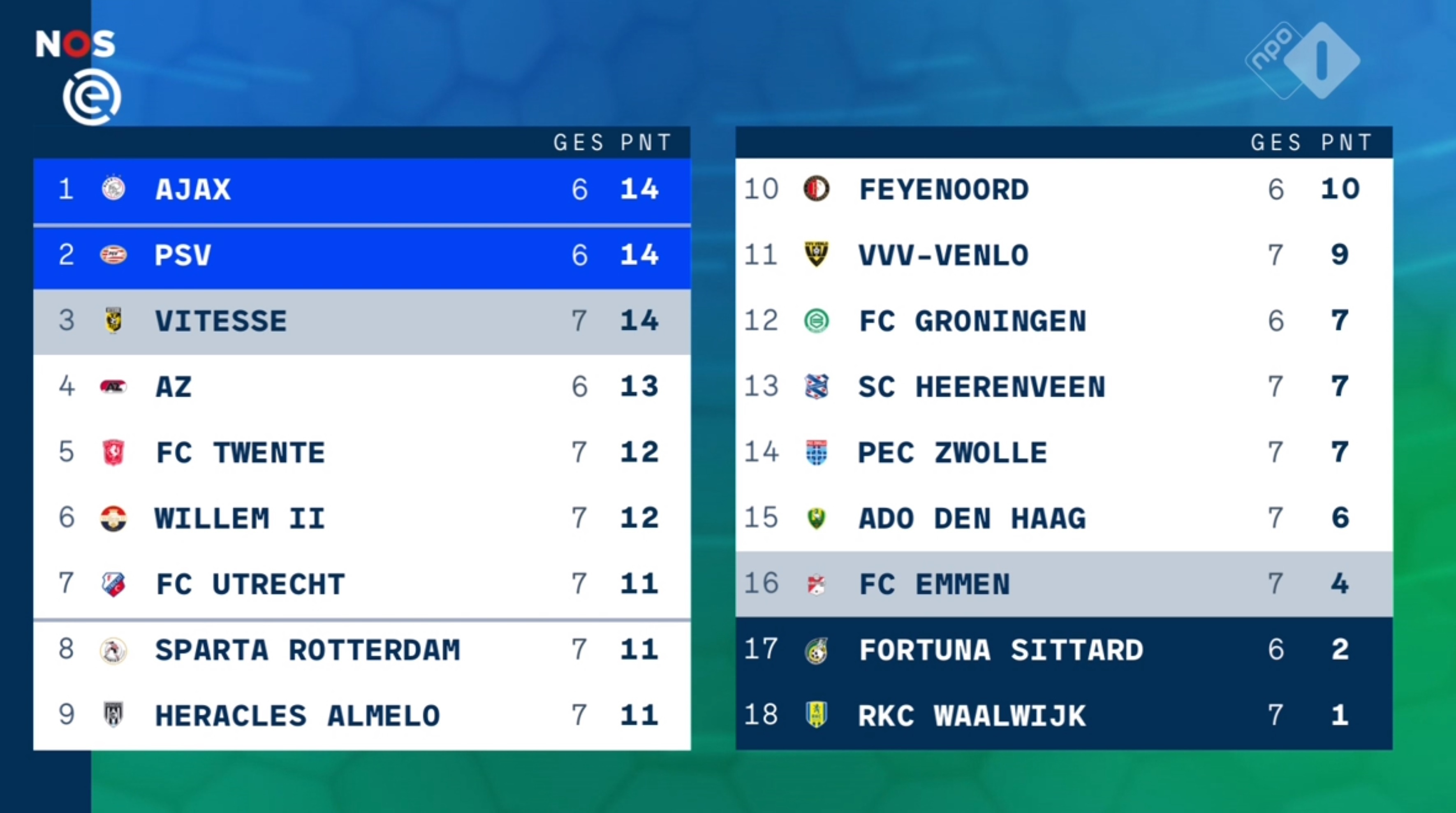 Wel schrijnend om te zien dat over 10 wedstrijden PSV en Ajax weer op een straatlengte van de rest staan. Er is geen derde titelkandidaat in elk geval.