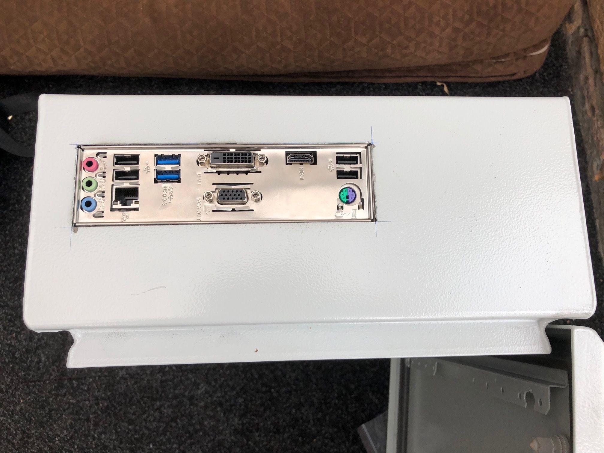 Na lang zoeken ben ik uit gekomen bij een schakelkast van Schneider en ben ik begonnen met maken van uitsparingen voor het moederbord en fans.
