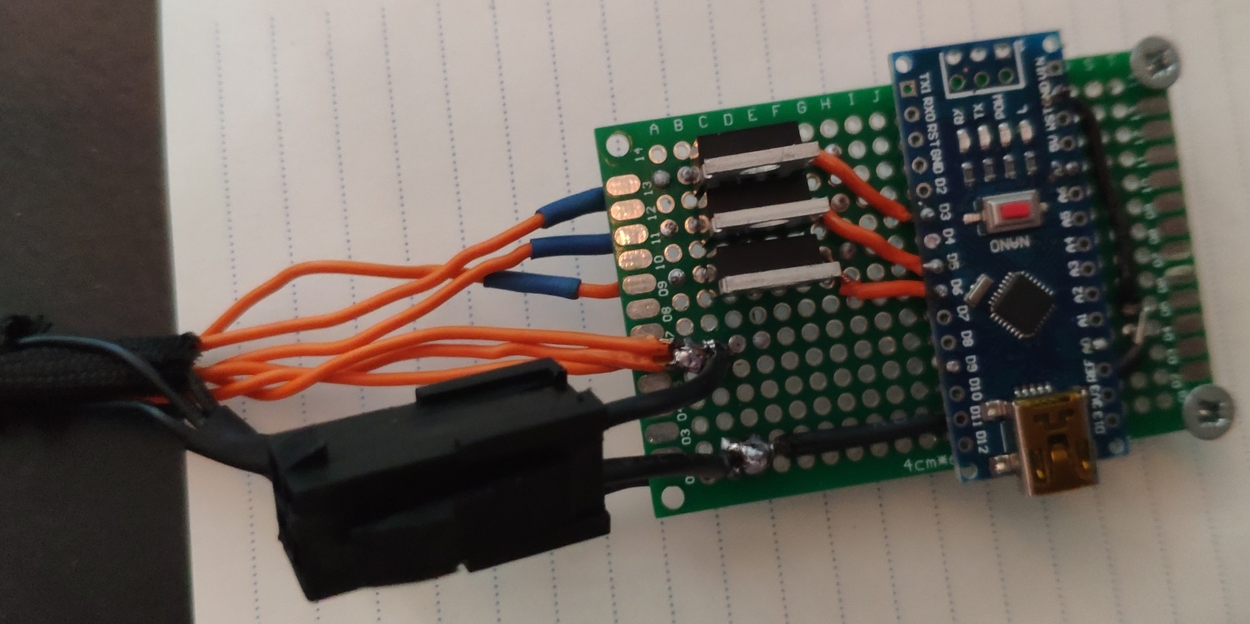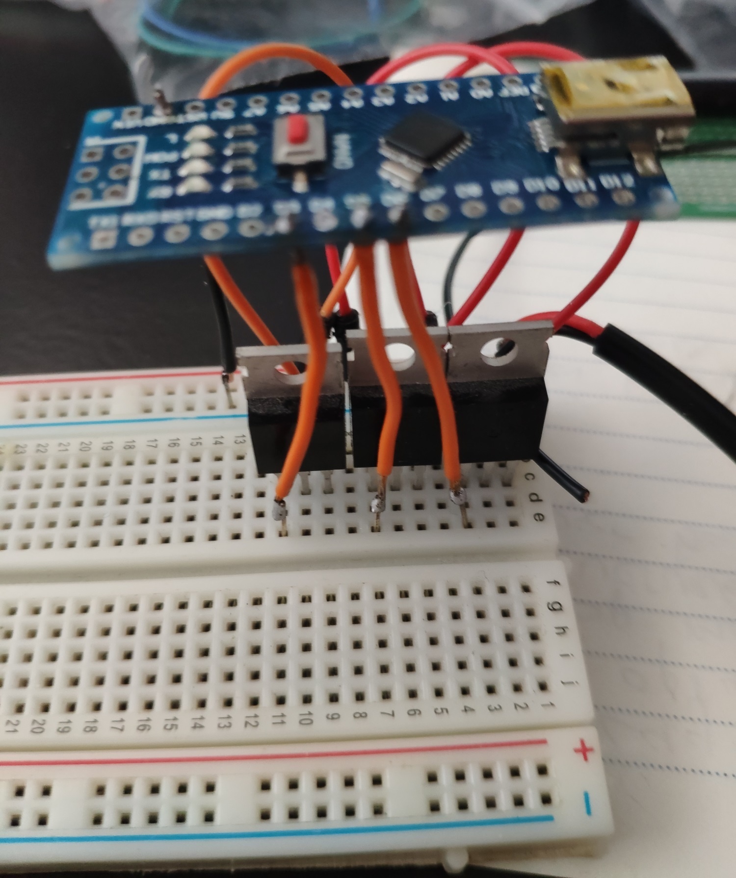 De transistors waren nodig omdat de arduino kapot gaat als ik de data lijn direct aansluit, ik had misschien kleinere transistors kunnen gebruiken, maar deze had ik liggen en werkte.