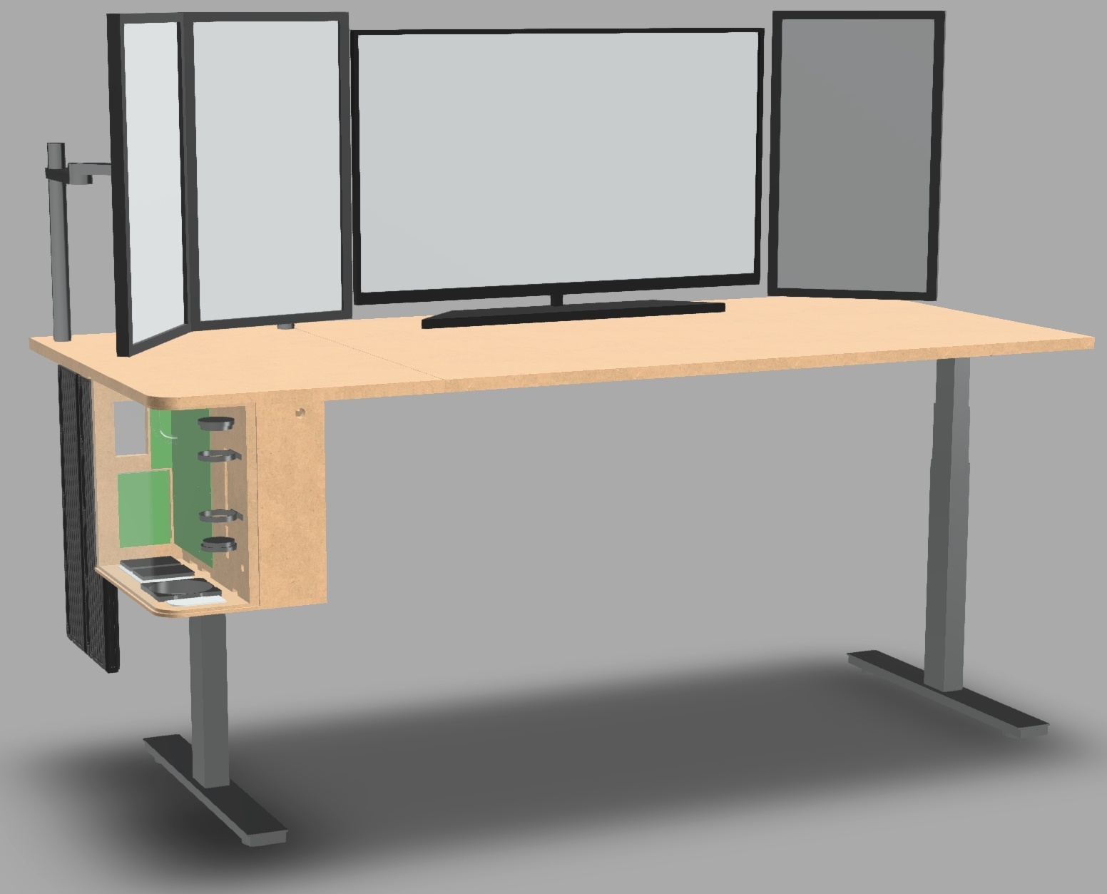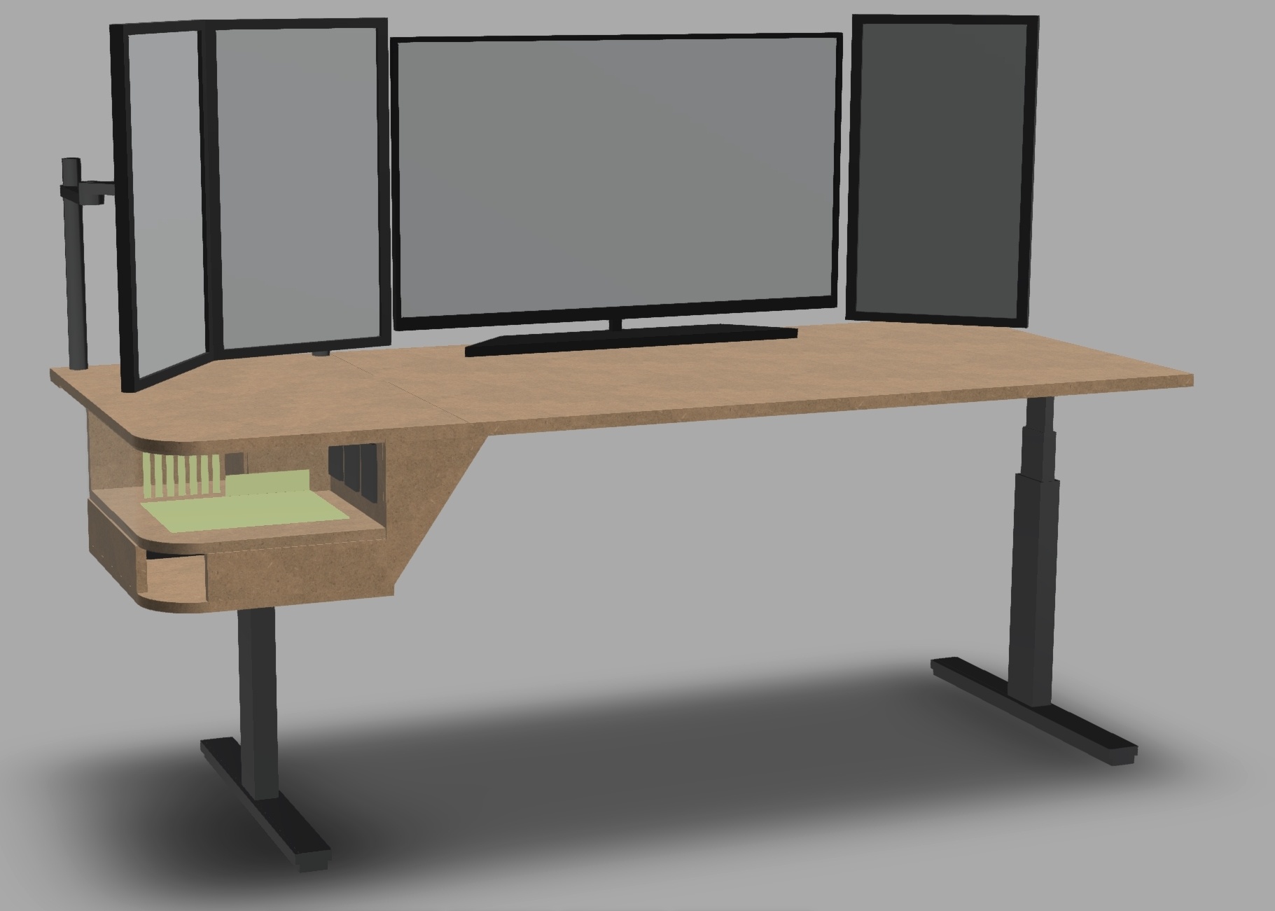 Het project ontstond door de droom van andere bureau pc-kasten die ik voorbij heb zien komen (de eerste was de l3p d3sk). Vanuit die droom ben ik een aantal maanden geleden begonnen met een 3D model maken.