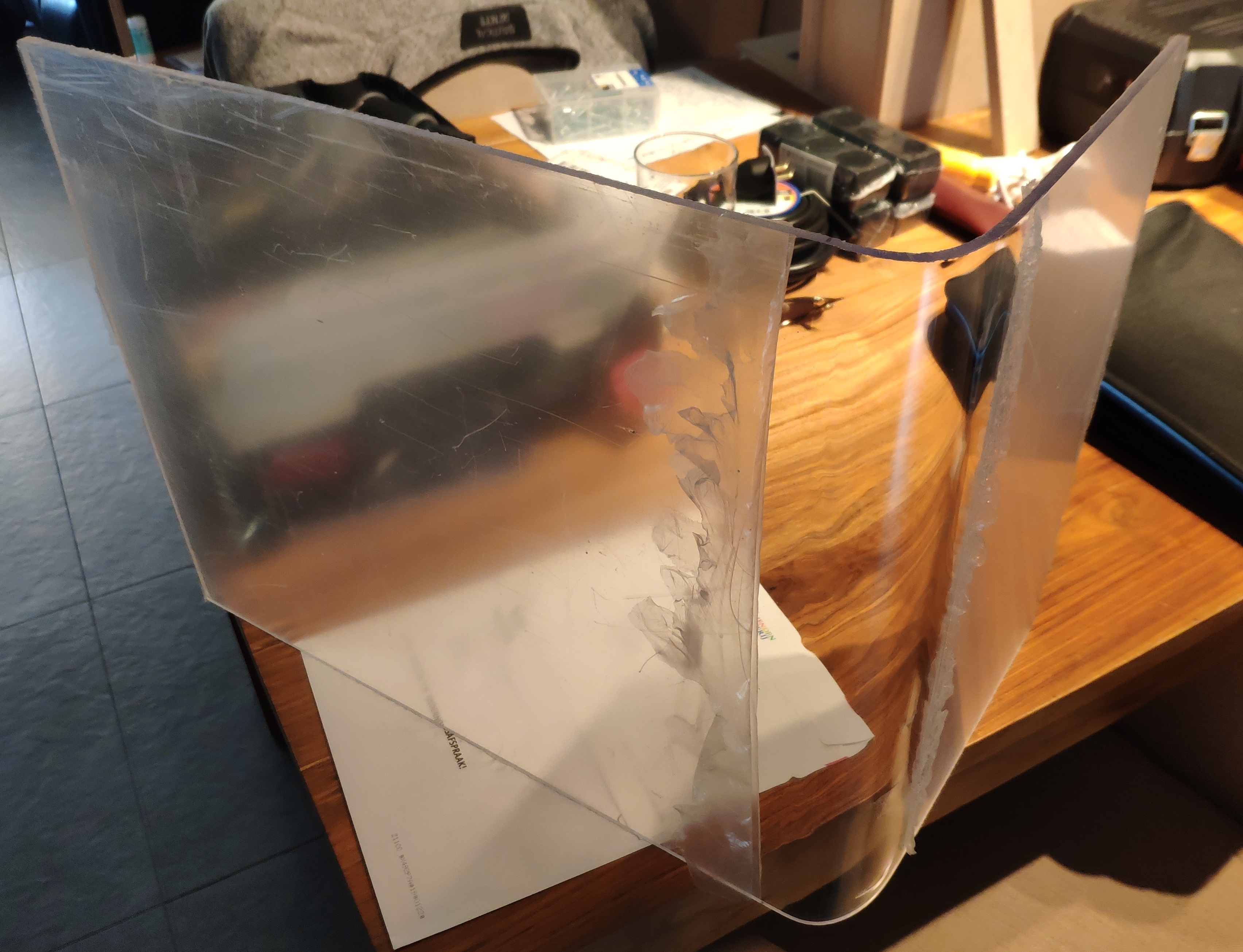 Eerste stap die ik gezet heb is de plexi-plaat buigen. De eerste keer was ik te ongeduldig, plaat zei krak, dus ik kon fijn een nieuwe kopen.