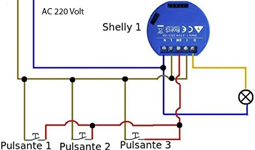 Een Shelly monteer je altijd tussen de (laatste) schakelaar en de lamp. Op die manier maakt het niet uit hoeveel schakelaars er voor zitten. Er is dan één geschakelde draad. Dat is alles en ook precies wat je nodig hebt.