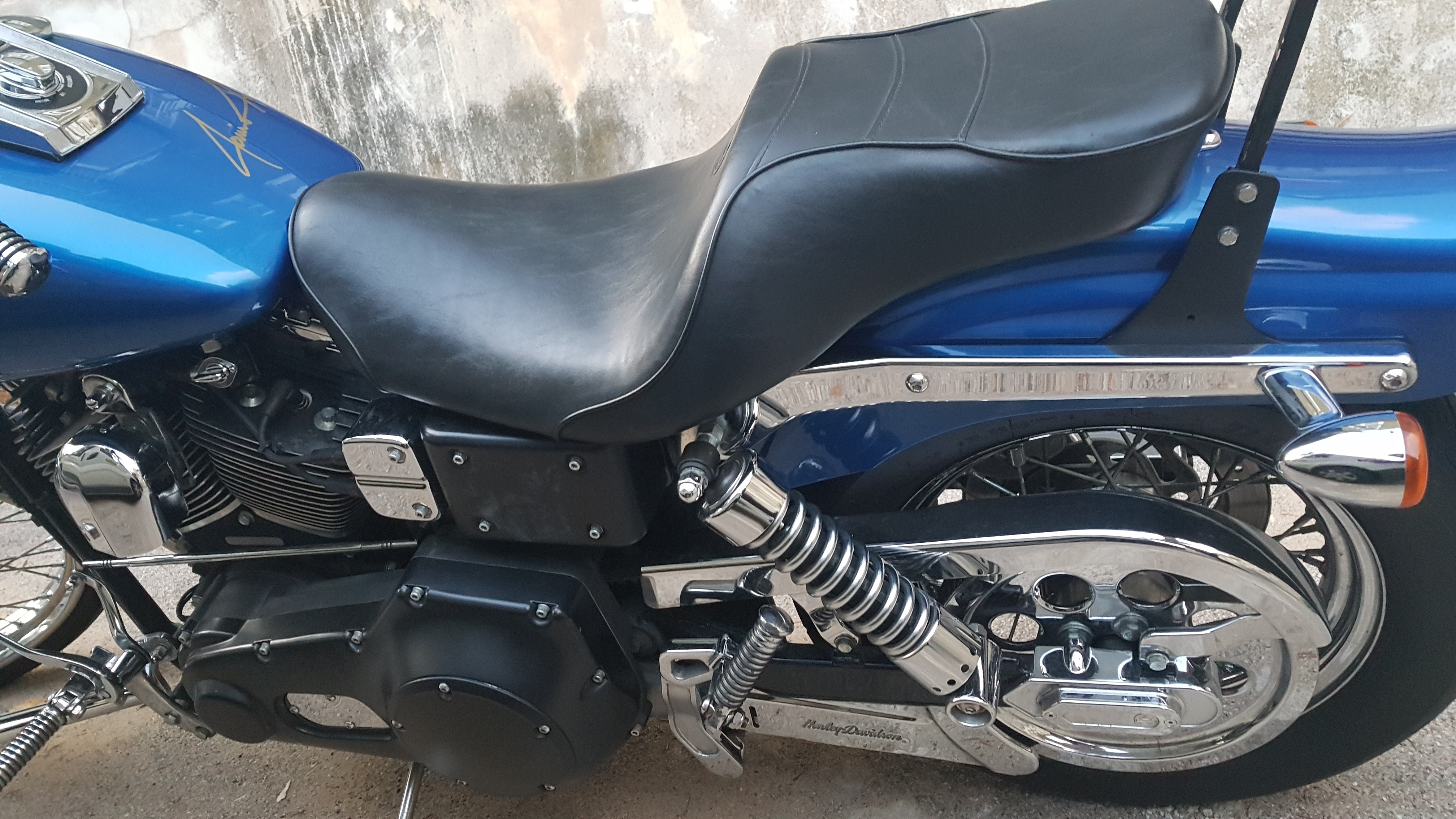 Nu nog een manier om ze te installeren bedenken. Ik heb nog geen passend frame gevonden voor de Dyna uit 2002 (enkel voor nieuwere modellen, waar dan specifiek bij staat dat deze niet past op mijn bike). Ik ben wel handig maar heb niet veel gereedschap om metaal te bewerken, noch de ruimte om het te doen (apartement). Iemand suggesties? De eerste foto is met mijn oude zadel (toen al even gepast), ik heb nu dus een duo seat.