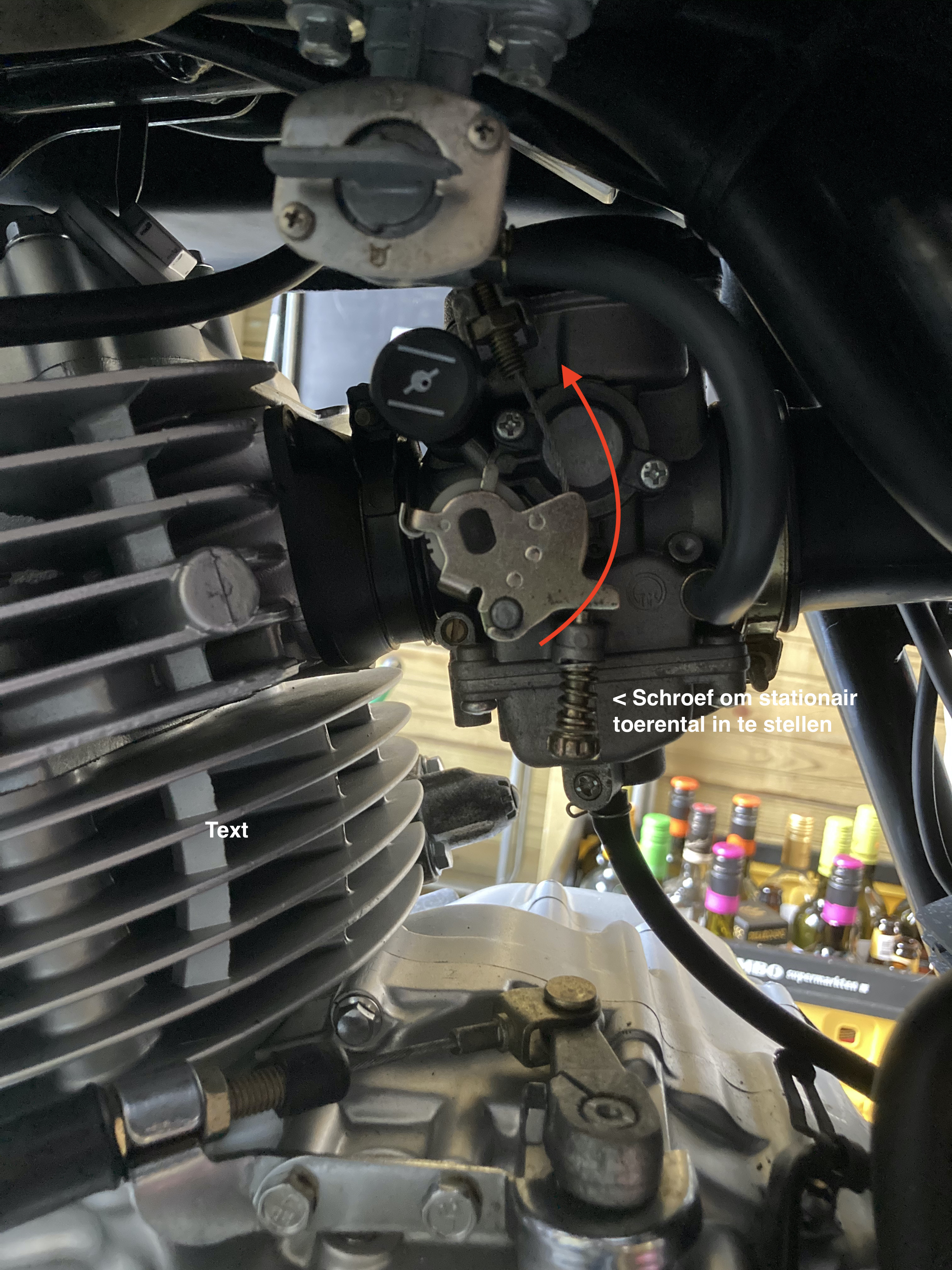 Maar nu zie ik dat de carb op mijn Mash niet helemaal lijkt op een normale carburateurDe gaskabel komt er niet 'via boven' in waar ik iets los zou kunnen schroeven, maar er zit een draaimechanisme aan de zijkant waar een springveer in zit. Omdat ik niet zeker weet of en hoe ik dit los kan maken, probeer wat ik online te vinden. Maar dat is knap lastig. Zeker als je er niet zo in thuis bent, zoals ik