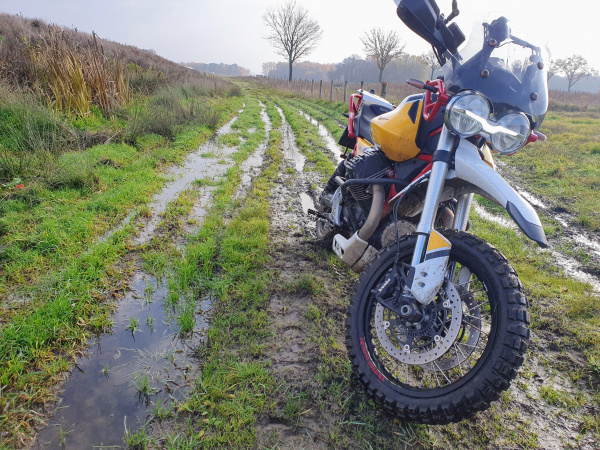 Guzzi deed het goed, meeste paden waren wel een stuk droger dan dit en dus beter begaanbaar.