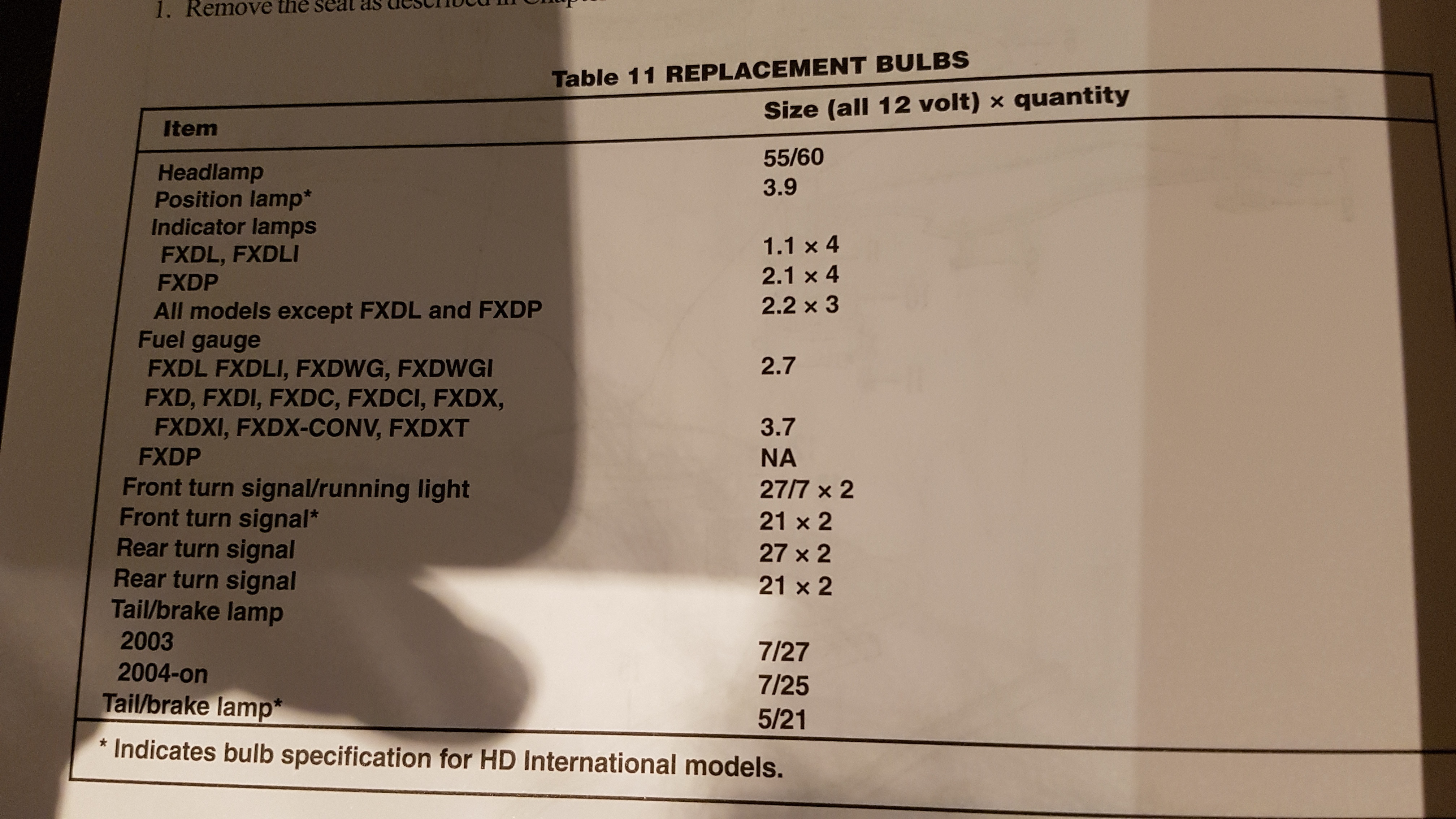 Probeer nu te achterhalen welke reservelampjes ik het beste kan kopen, maar word nog niet veel duidelijker van het lezen van de Haynes/Clymer handleiding. Wat voor lampjes heb ik nodig, uitgaande op deze tabel (mijn model is de FXDWG)?
