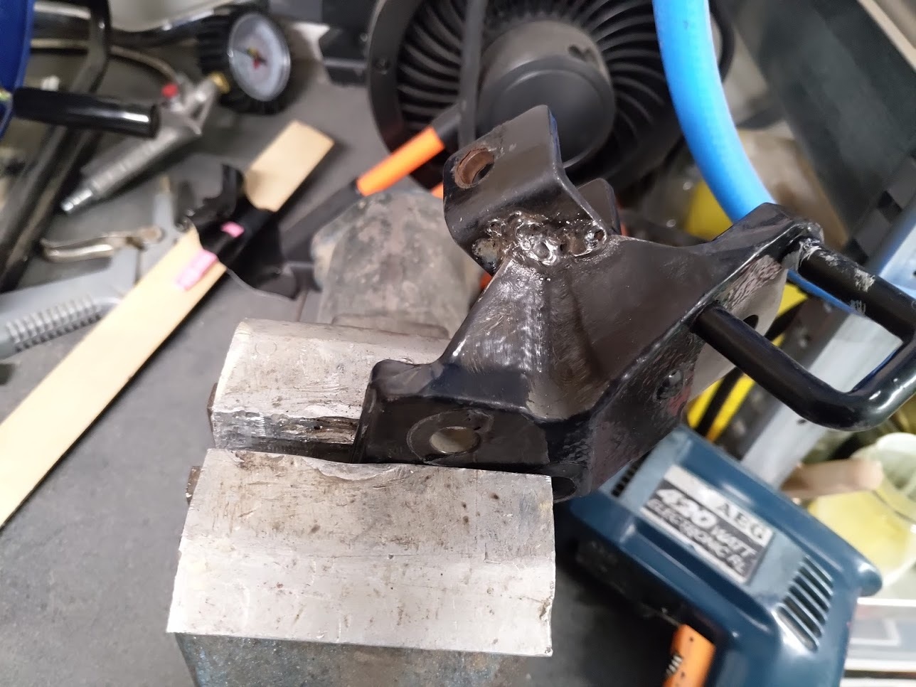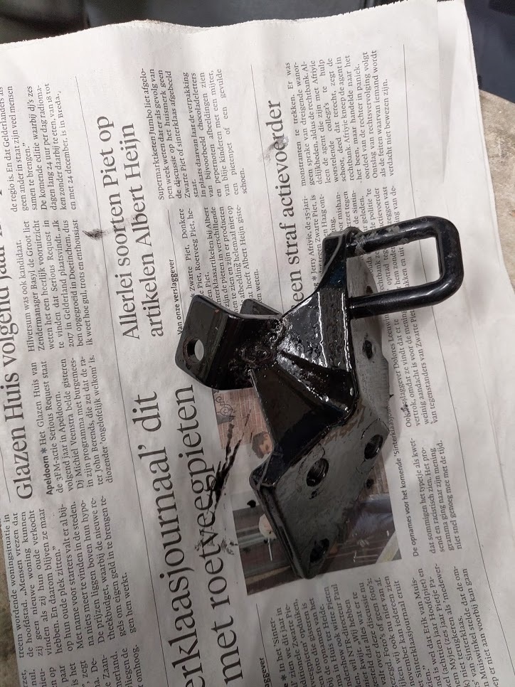 De 2 delen van het bracket zijn los van de rest van de motor, en schoongemaakt. Vanmiddag meenemen van mijn stiefpa om de verf eraf te halen en kijken of het weer aan elkaar vast wil