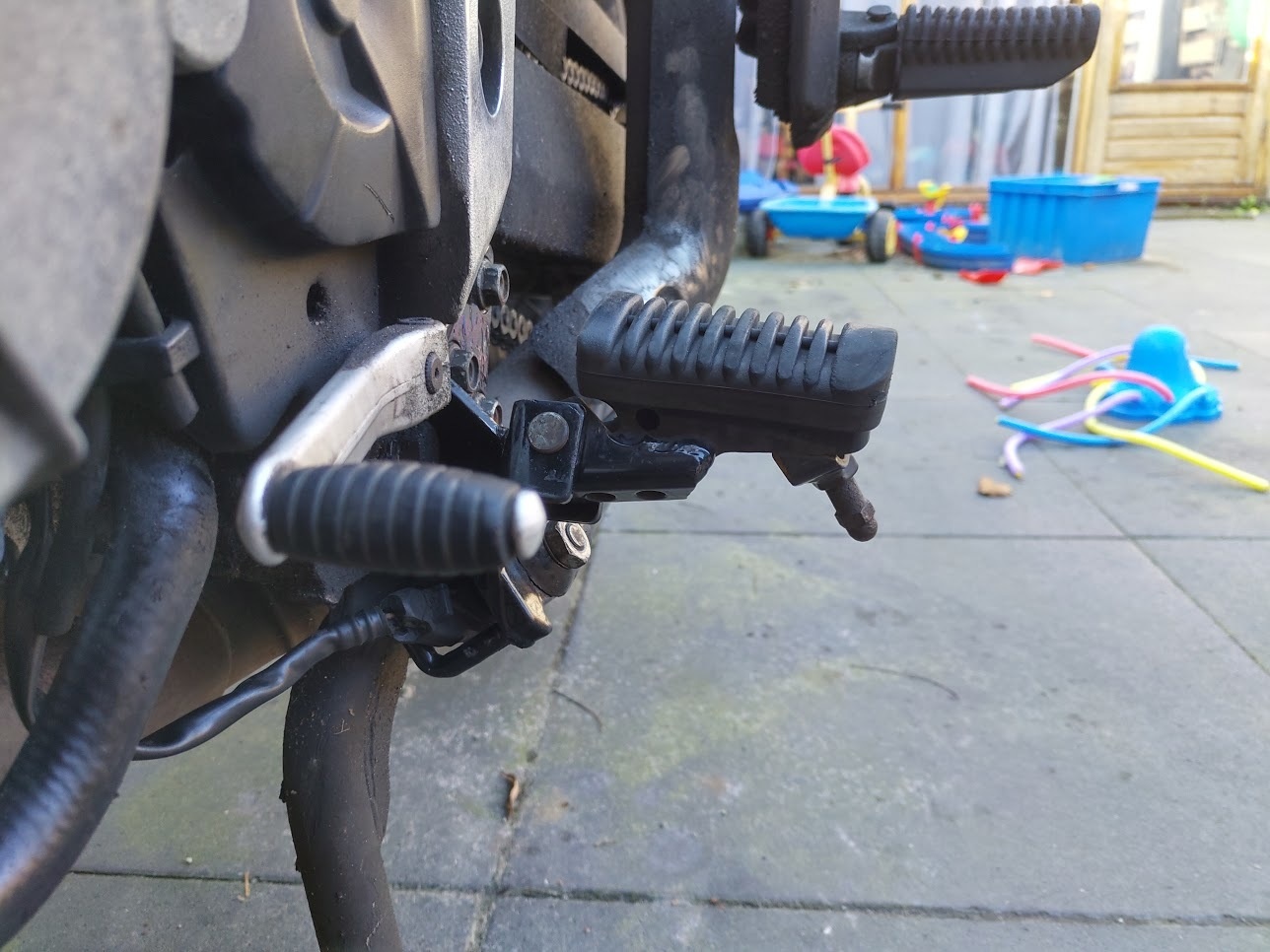 - Andere pegs voor mijn voeten installeren (zit te denken aan zo'n plaat waar je hele voet op kan staan, wel zo comfortabel op langere ritten)