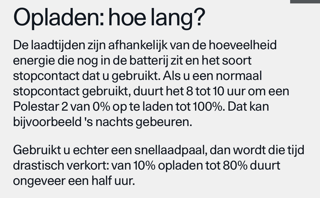 En juist daarom is het een knappe prestatie van Polestar, 4,7 sec naar de 100, is vergelijkbaar met de LR AWD. Veel beter dan de Leaf, Golf, Niro en Kona. Zegt dit ook iets over de efficiency van de motoren? Zou mooi zijn!