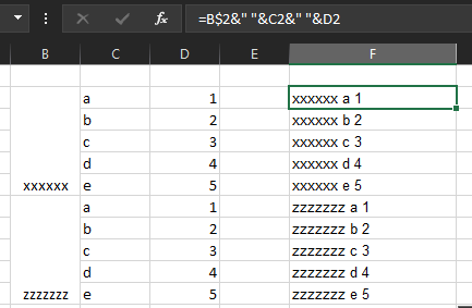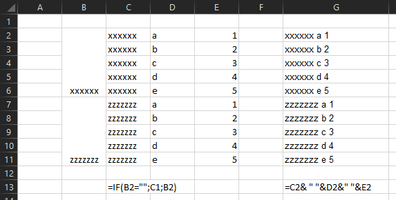 Hoe kan ik er nu voor zorgen dat in in kolom F de samengevoegde cellen meegenomen worden in de opsomming. Dus dat de opsomming in kolom F, tot aan rij 6 de waardes uit cel B2 gebruikt en vanaf rij 7 overstapt naar cel B7.