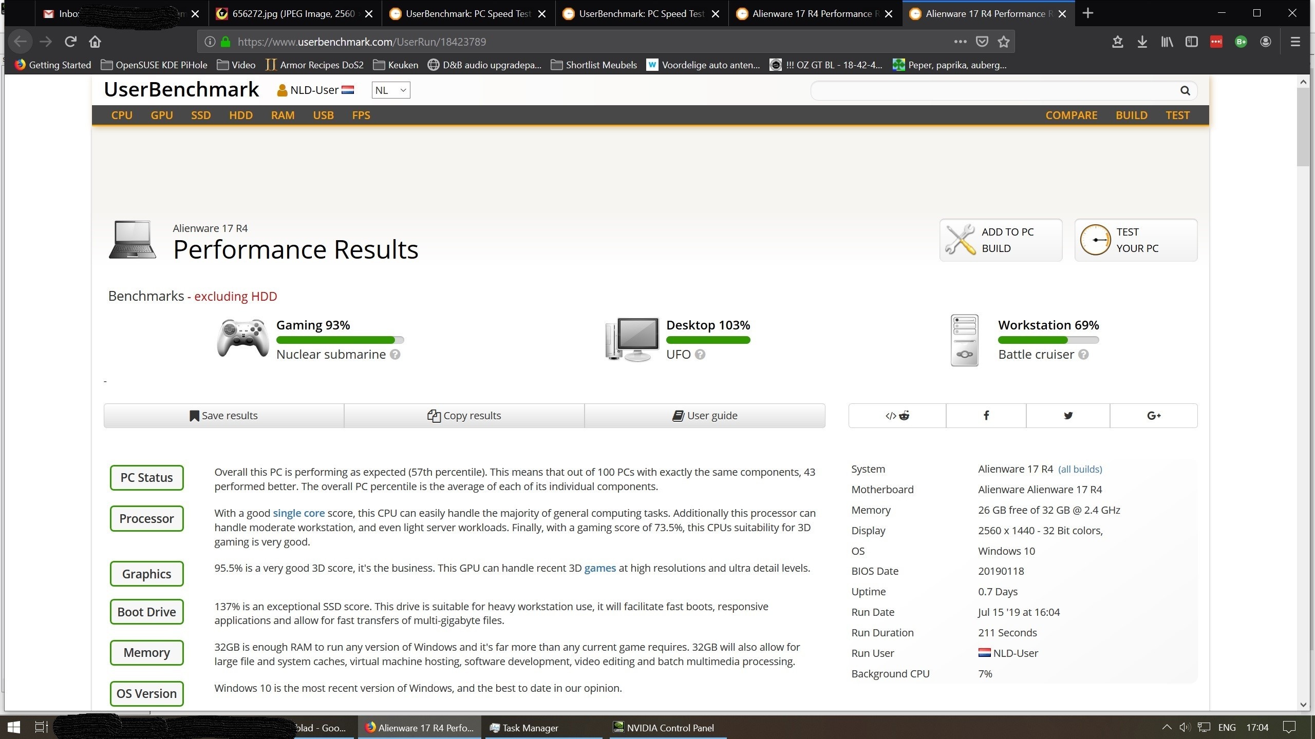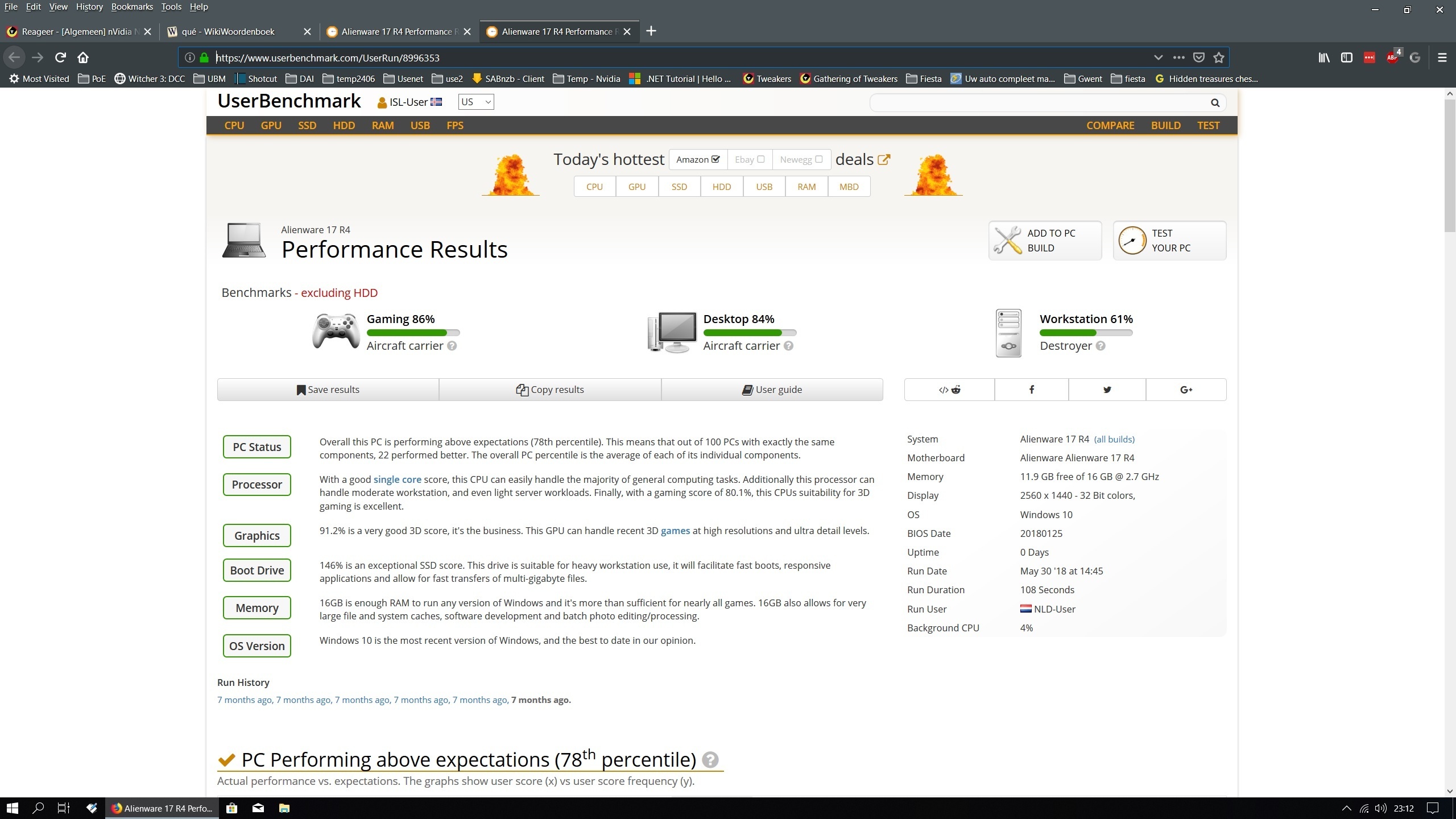 Nieuwste bios, nieuwste driver check bij DELL, compleet up to date.....(Windows build 18362, Alienware firmware 1.7.0).