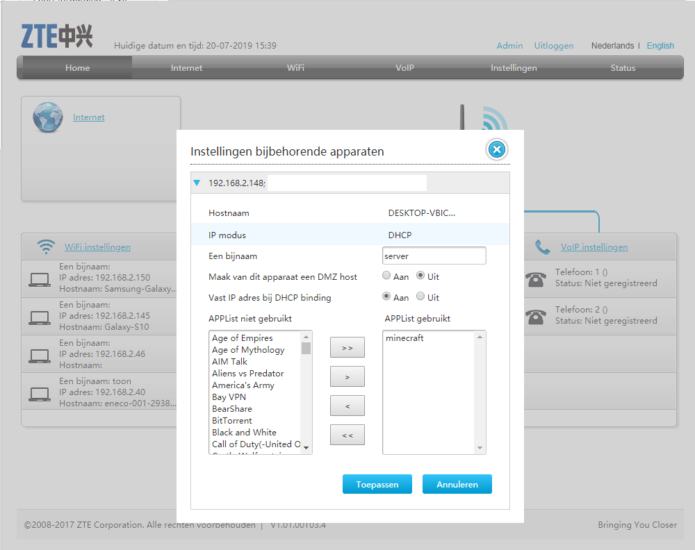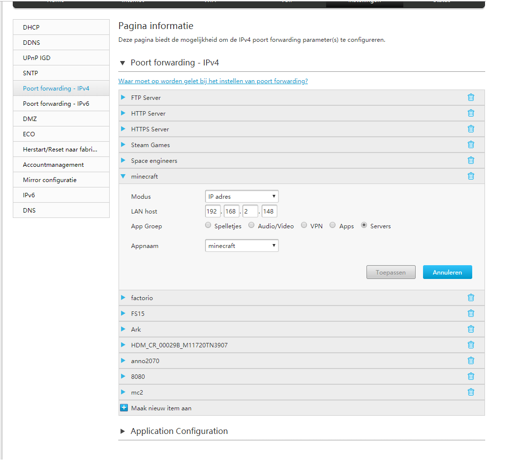 nu wil het alleen zo zijn, dat ik geen port kan forwarden.