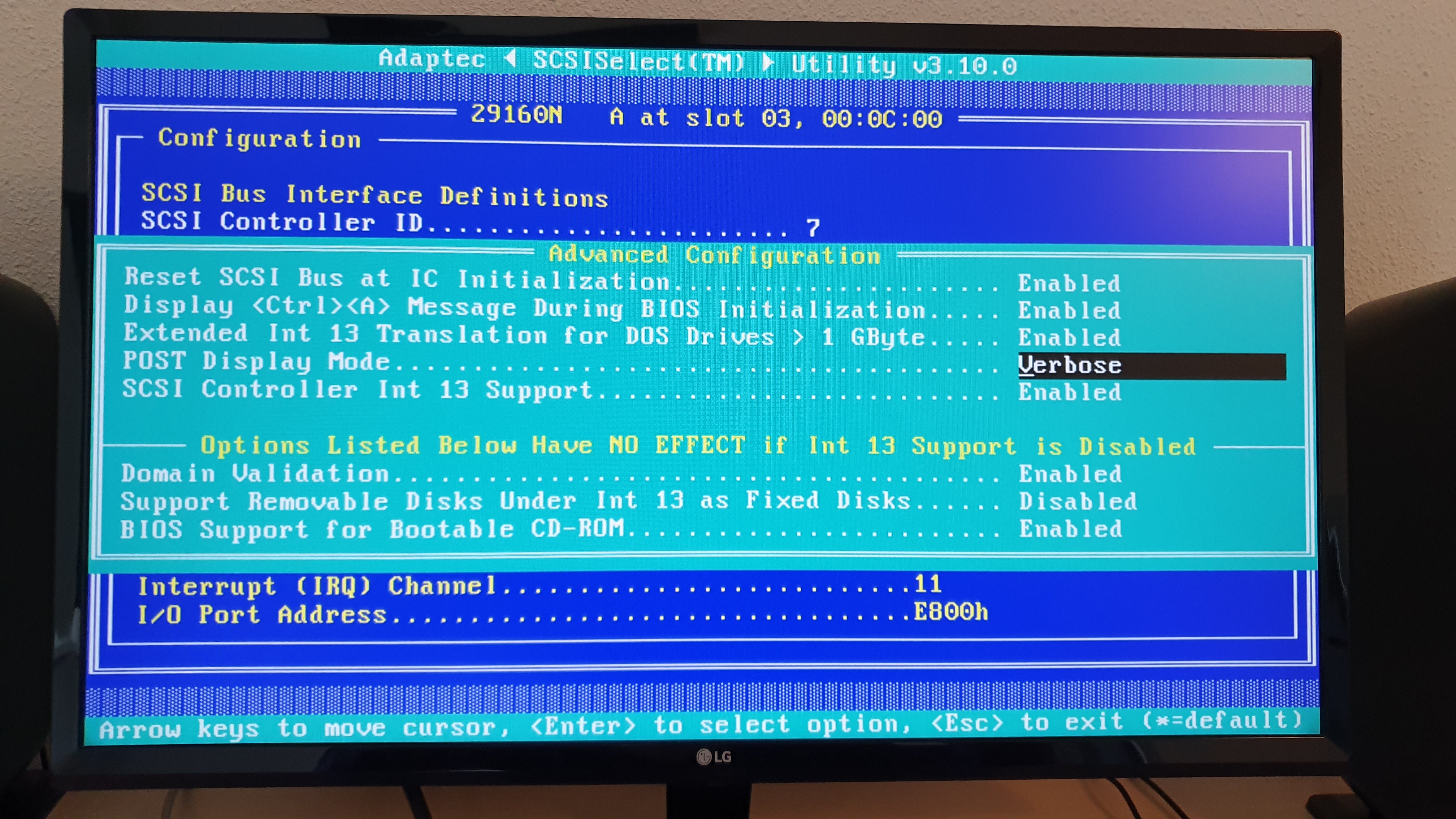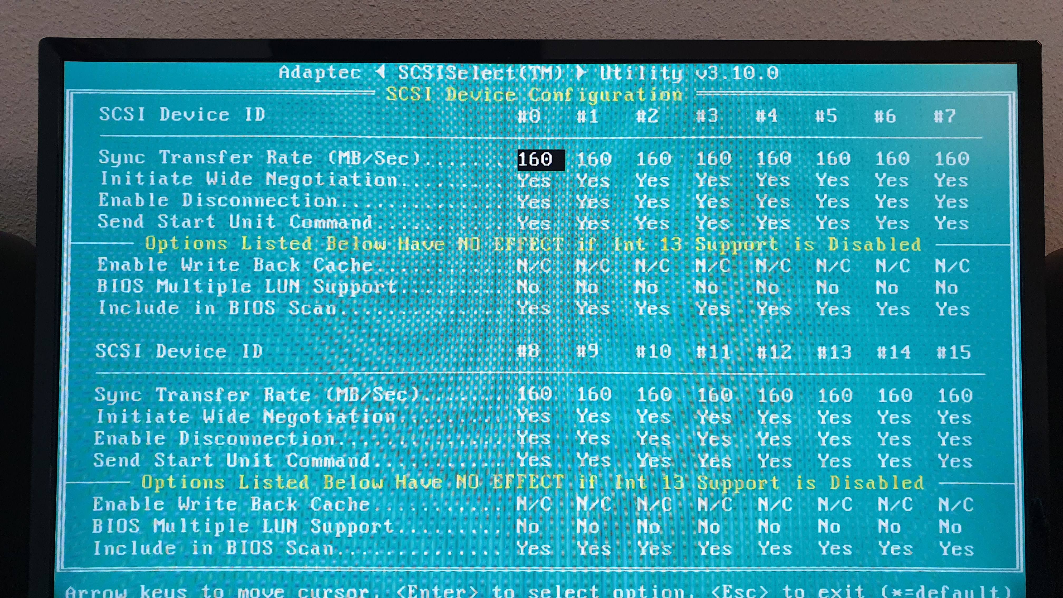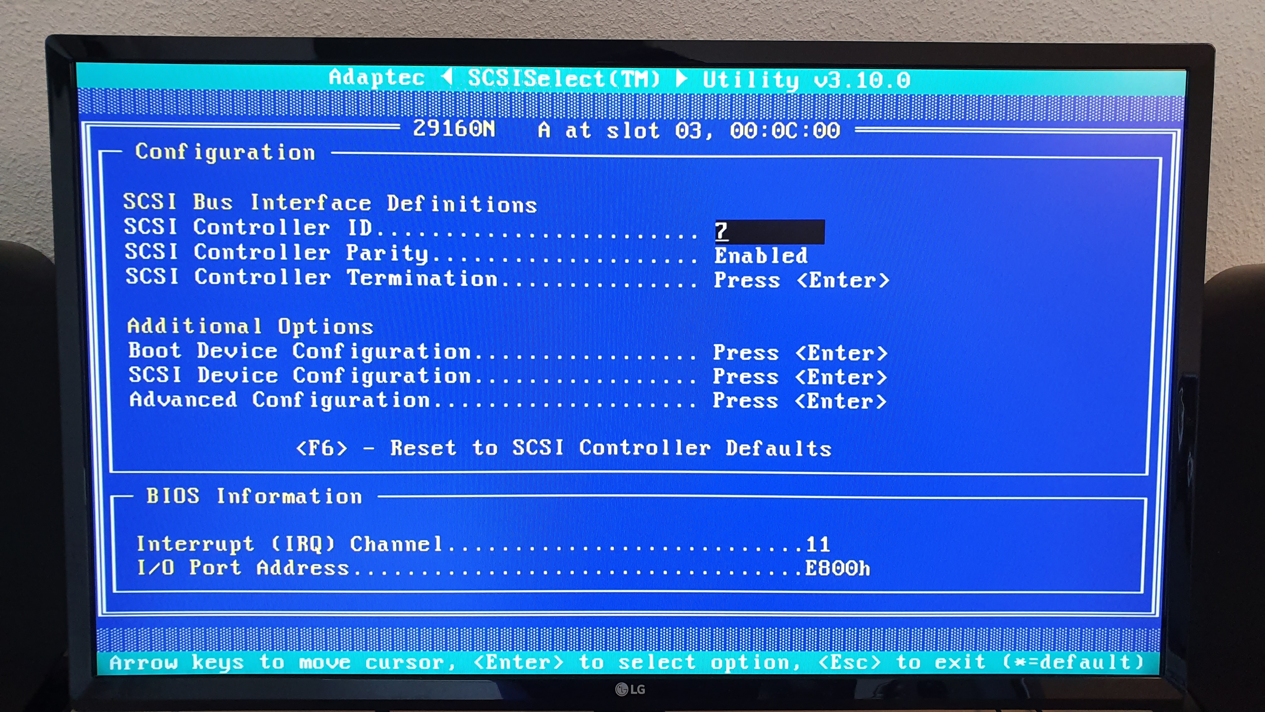 Misschien staat hier iets niet goed. Ik heb van veel instellingen ook geen idee wat ze doen. Is de eerste keer dat ik met SCSI werk. Waarom zet adaptec de kaart altijd standaard op id 7 en waar kan ik die het beste op zetten?