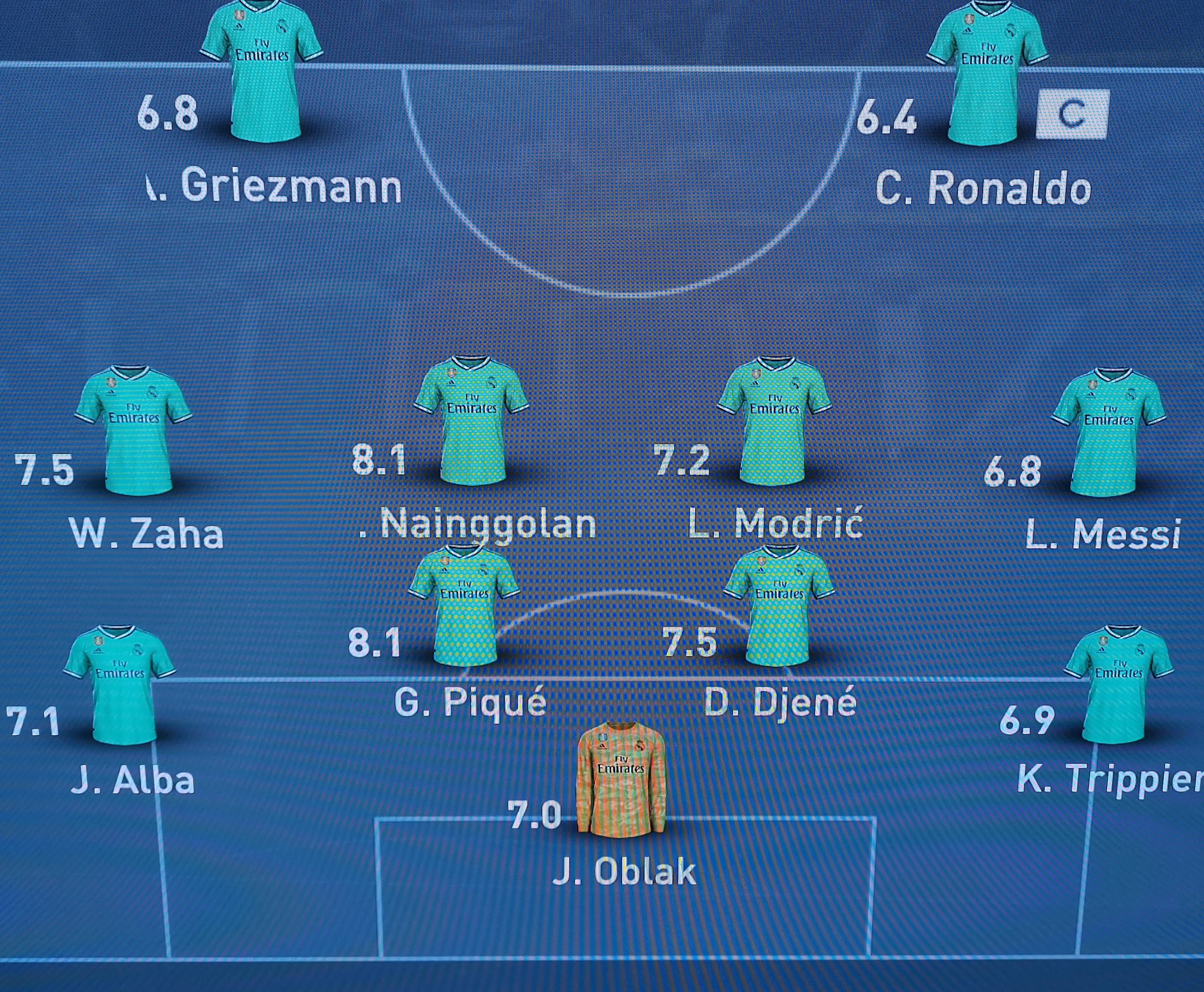 Twijfel nog steeds wie er naast Messi gaat spitsen in een 4 2 2 2 opstelling, want Yedder als Cam beviel mij de laatste tijd ook erg goed. Toen had ik Neymar en Mbappe in de spits.