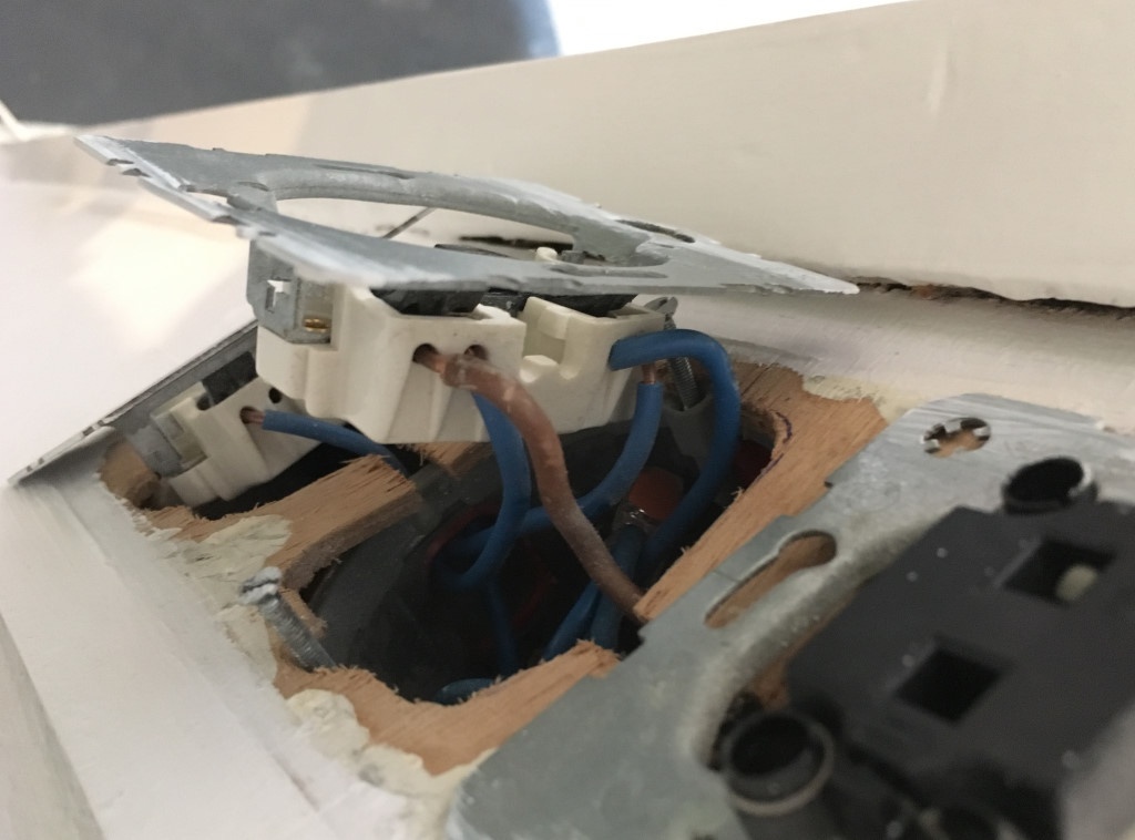 Mijn dochter heeft een huis gekocht en afgelopen vrijdag de sleutel in ontvangst genomen. Uiteraard moet er behangen en geschilderd worden dus werd ik erbij gehaald om onder meer even wat werkverlichting op te hangen. Ik heb een afdekkap verwijderd en trof toen een lasdop met een combinatie van bruin en blauw installatiedraad aan. Toen ik later op de dag ook nog een wandcontactdoos met 3 blauwe aders aantrof heb ik alles maar even geïnspecteerd.