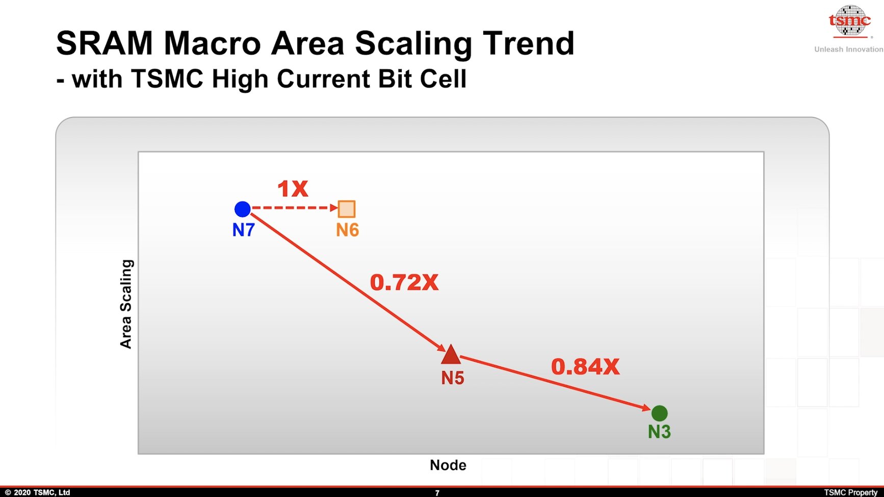 Hoe kom je aan die scaling? Als ik de slides van TSMC moet geloven is SRAM 1:1 tussen N7 en N6
