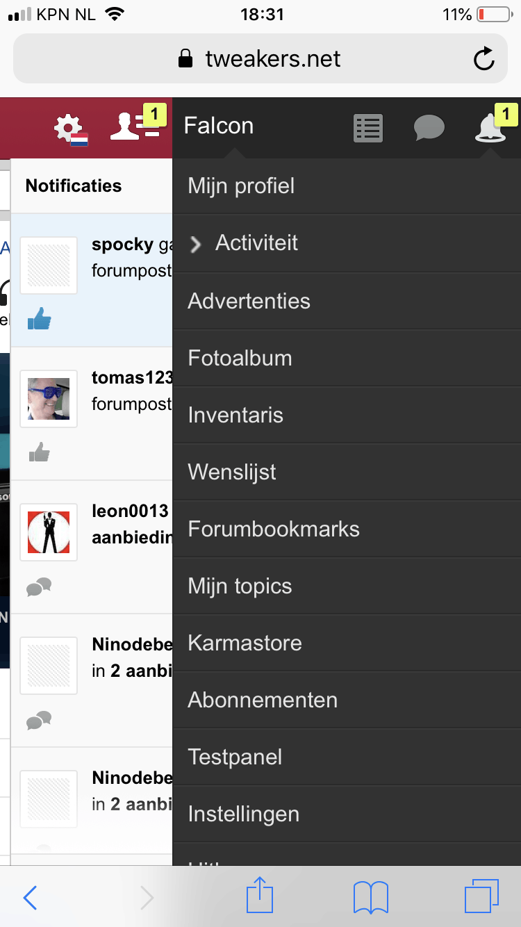 1. Klikken op notificaties belletje-icoon op FP