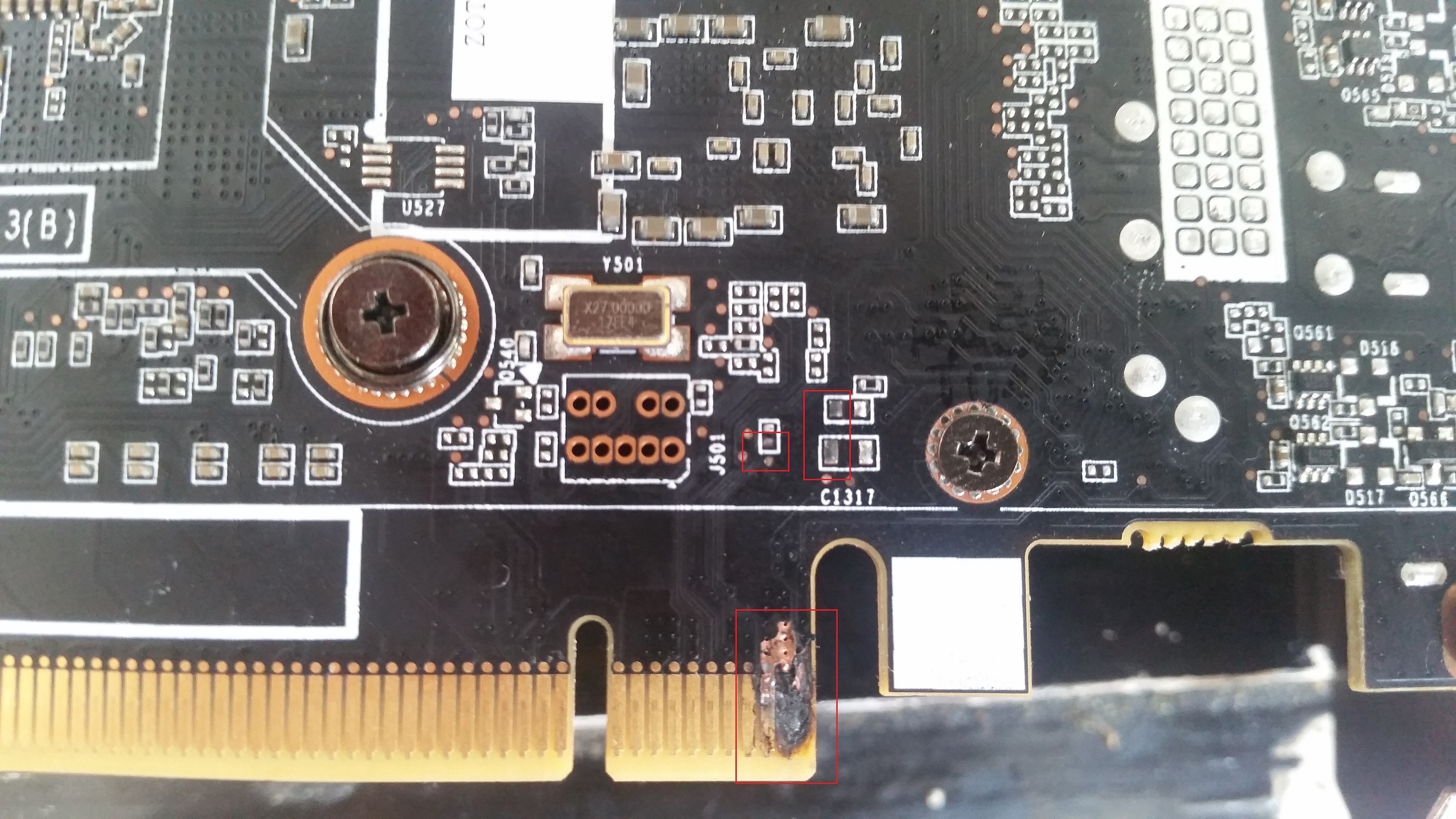 Voor zover ik het begrijp: De volledig ontbrekende pin bepaalt samen met prsnt2 het vermogen wat door het moederbord naar de kaart gestuurd wordt. En hier zit mijn grootste onzekerheid; als er iets mis is met de kaart door de kortsluiting en je repareert die connectie, wat gebeurt er dan? Sloop je nog een moederbord? Doe je niks en laat die connectie dus weg, levert het moederbord wrs minder vermogen wat door de aansluitingen direct van de voeding gecompenseerd moet worden (er van uitgaande dat die spanningen worden samengevoegd).