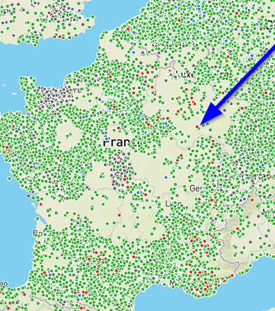 Als je de kaart van Ionity voor je pakt zie je echt elke 100km wel een laadstation in Frankrijk, dus gewoon een beetje die route volgen en dan komt het wel goed. En dus geen hotel in de laadwoestijn boeken :+