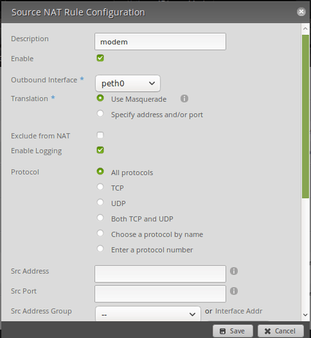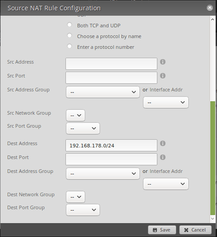 Source NAT masquerade regel aangemaakt (screenshots hieronder)