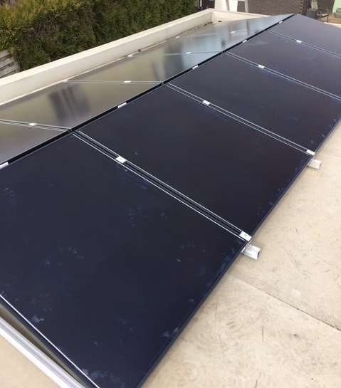 Voor het aanbrengen van zonnepanelen op ons huis heb ik een legplan in elkaar gepuzzeld waarmee ik met name maximale opbrengst nastreef (maar wel met een nog enigzins gunstige terugverdientijd). Ik kan eventueel later nog panelen bijplaatsen op de garage, maar dit platte dak is het meest gunstig gelegen en de panelen zijn hier minder zichtbaar, dus wil ik hier beginnen.