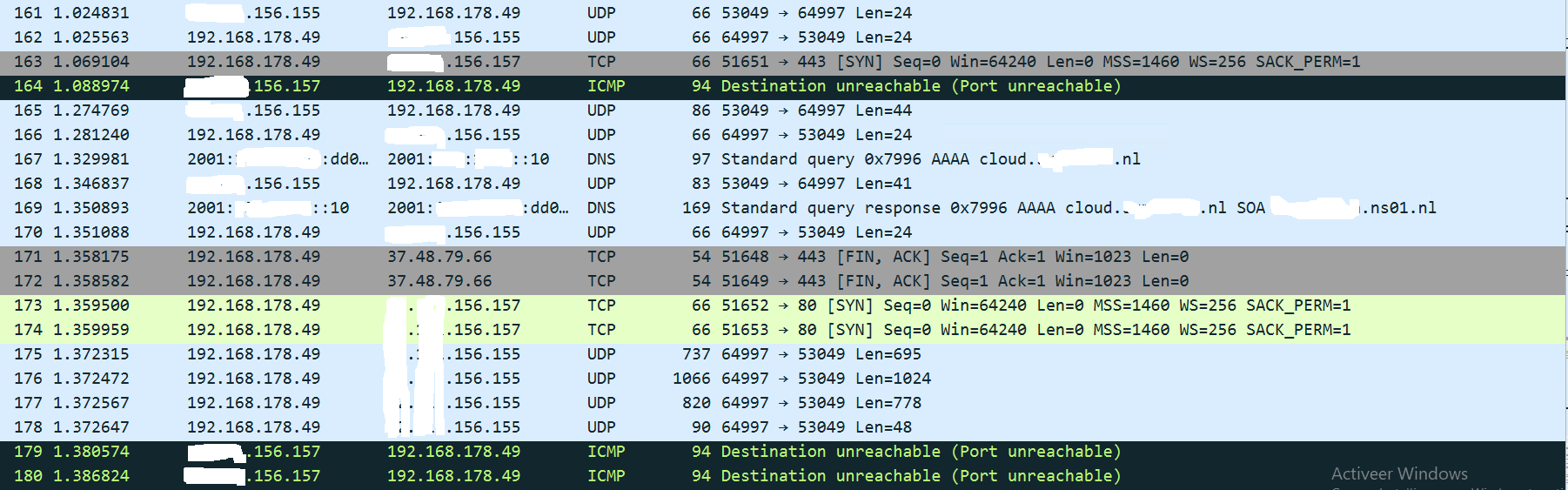 Waarbij de .156.155 mijn eigen uitgaande IP is. En 156.157 is het uitgaande IP van mijn Nextcloud (SNAT rule in mijn edgerouter).