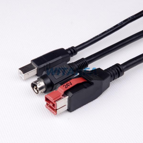 De PoweredUSB-kabel is met de monitor verbonden met een soort printplaatconnector met 8 pins. Op pinnen 2 en 7 staat 12V en op pin 3 staat 5V. De andere pinnen zou ik niet weten waarvoor ze exact dienen maar een deel zal dus voor USB zijn die ik niet nodig heb.