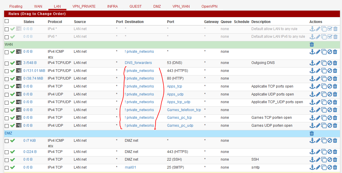 Maar ik wil poort 443 richting mijn andere VLANnens bijvoorbeeld niet open hebben staan.