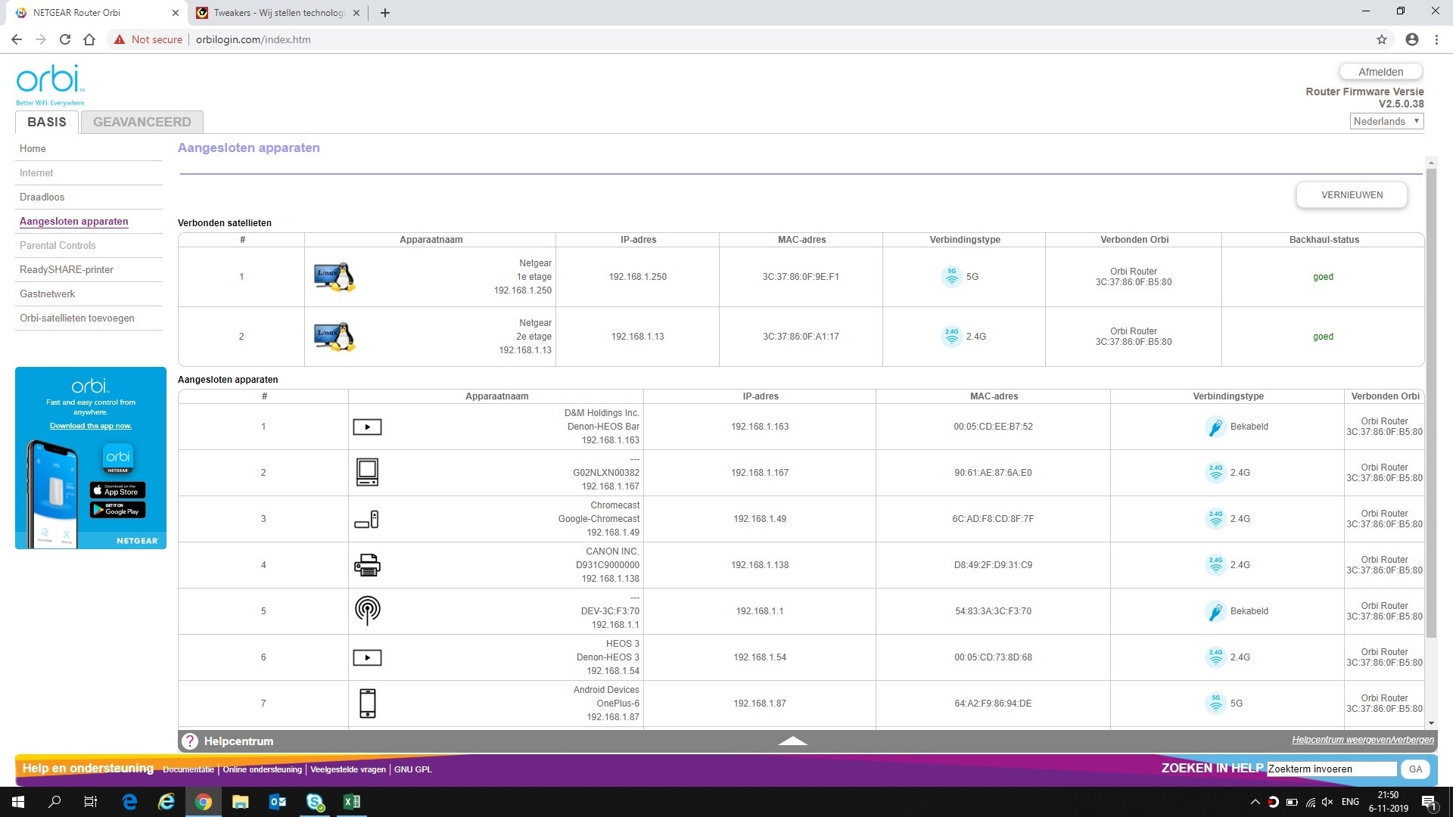 Via de V&A heb ik van een vriendelijke Tweaker een mooie Netgear Orbi RBK53 over kunnen nemen. De set bestaat uit een drietal stations. Nu weet ik dat het een router en tweetal satellieten zijn, maar hoe kan ik de boel het beste aansluiten? Ik zou graag de Orbis bedraad willen aansluiten, omdat ik denk dat dit stabieler is, maar indien dat niet zo is; hoor ik dat graag.