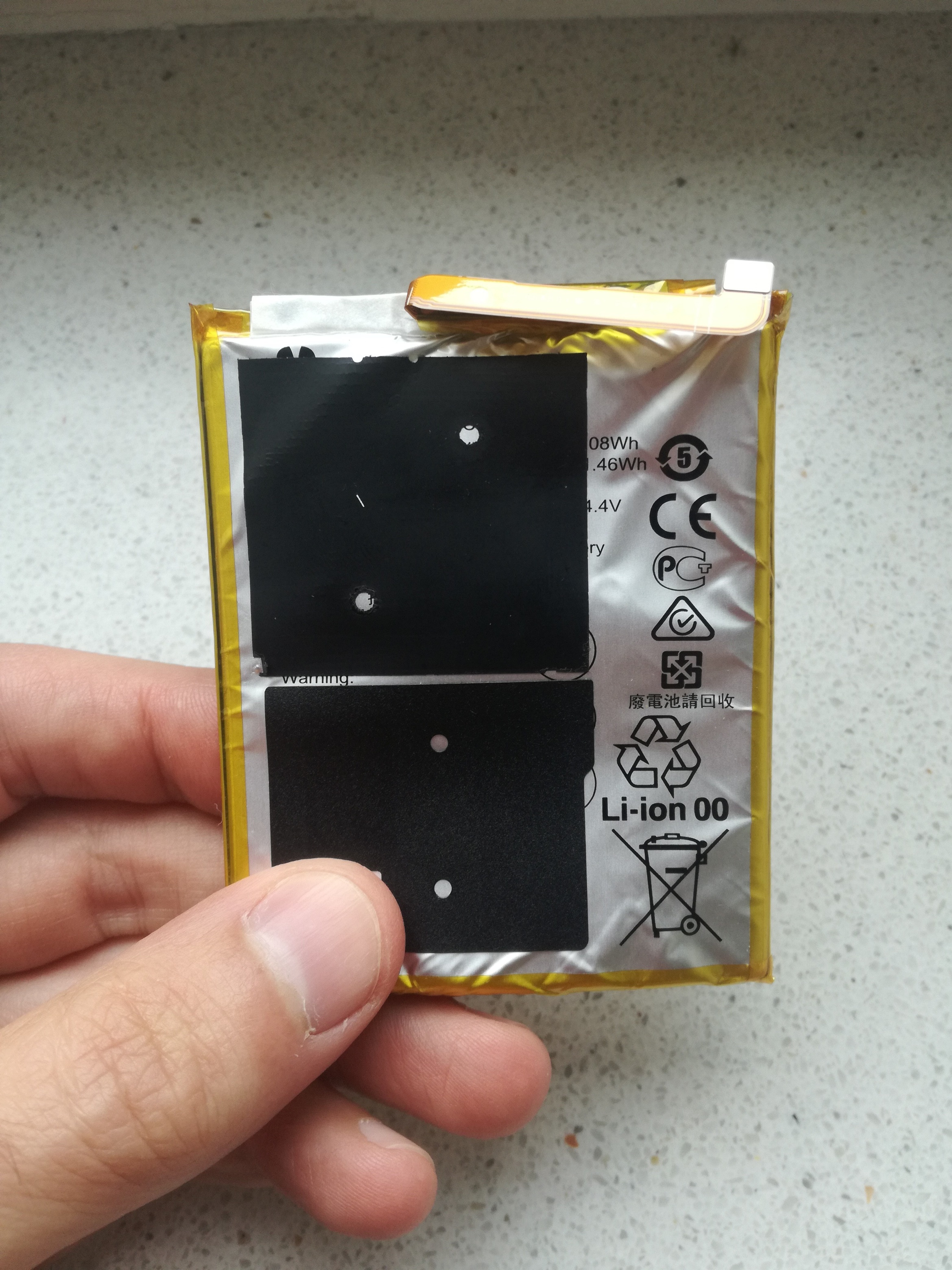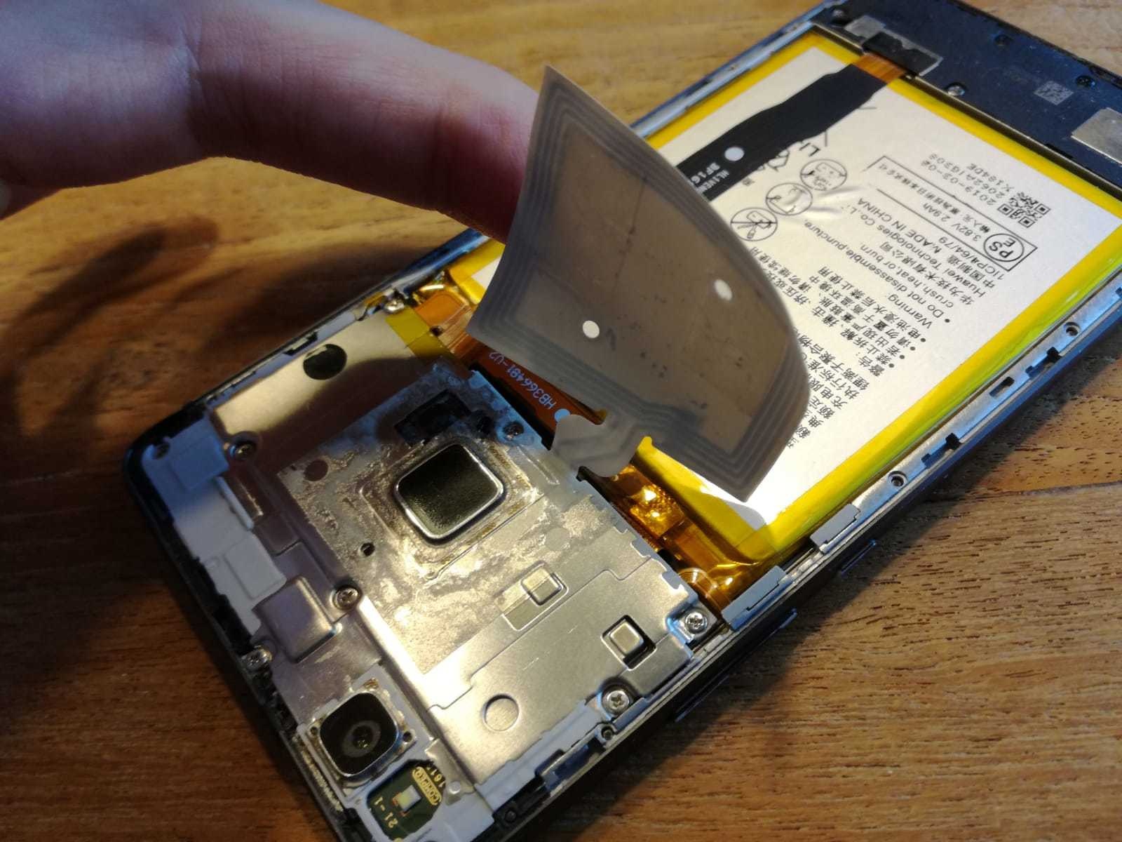Bij nader inzien moet er een isolatie tussen NFC antenne en accu worden geplaatst. Ik heb begrepen dat dit een ferrite sheet is. Dit zat ook op de oude accu geplakt maar ik heb deze niet overgezet (en de oude accu weggegooid).