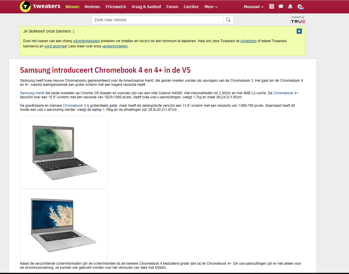 Heb tweakers altijd in mijn white-list, maar had mijn chrome re-installed, omdat ik dacht dat ik enkel het probleem had met de opmaak.Probeer het eens zonder allerlei content-aanpassings plugins? Dat gele balkje dat je in je screenshot hebt, suggereert in ieder geval dat je niet helemaal 'vanilla' browsed.