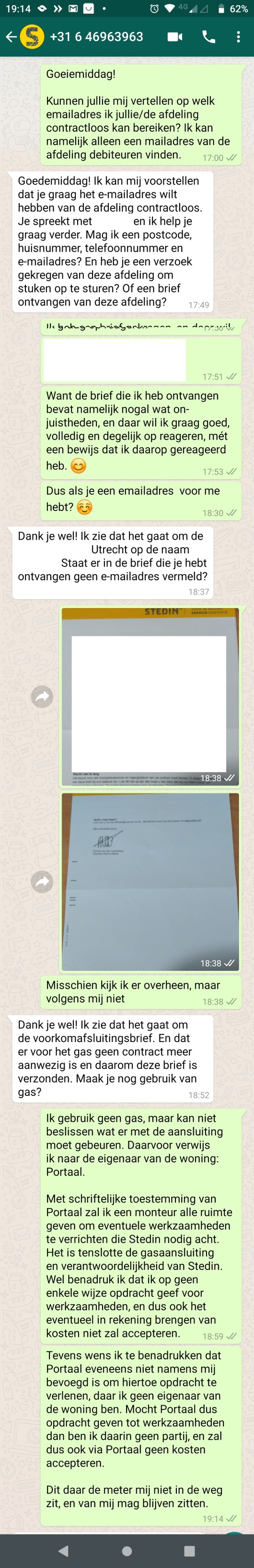 - Stedin: wil liever niet via email corresponderen. info at stedin punt net (gebruiken ze wel zelf, maar no_reply). Alternatief: fm_voorkomafsluiting at stedin punt net, of ook wel Voorkom_Afsluiting at stedin punt net (als je nog geen slotje hebt), FM_gasloos at stedin punt net (als je slotje van na 1-1-2019 hebt) en FM_veiliggasloos at stedin punt net (als je slotje van vóór 1-1-2019 hebt).